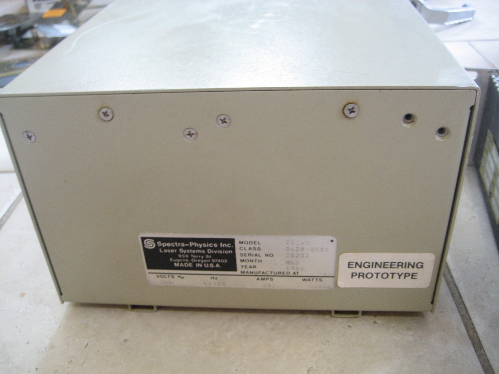 Spectra Physics Laser Power Supply X1 X2 X3 115 VAC - 1200 Watts - 20 Amps Model#- 261C This is used - do not know much more about these. This is for parts, cuz I was not able to test it. Plugs for X1 X2 X3 We will ship this to you for free!!! Will ship international (I get good rates - email for an estimate) please ask questions. Please look at pictures.
