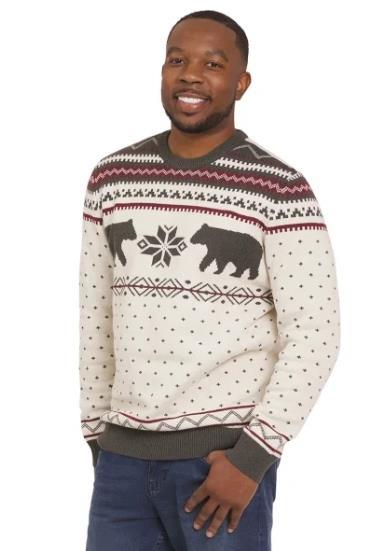 Lands' End Mens Sweater Cream Multicolor Fair Isle Christmas Family Crewneck