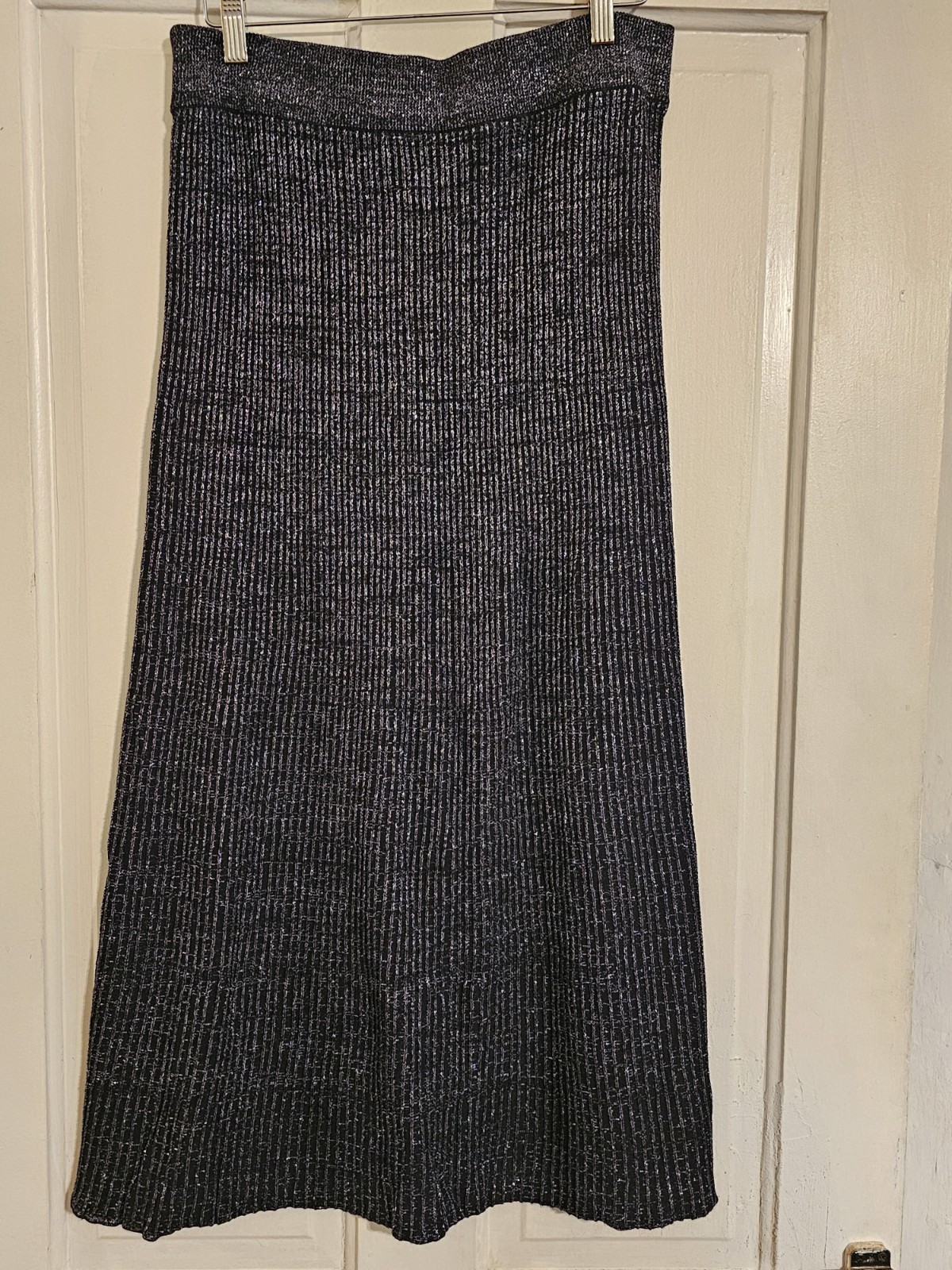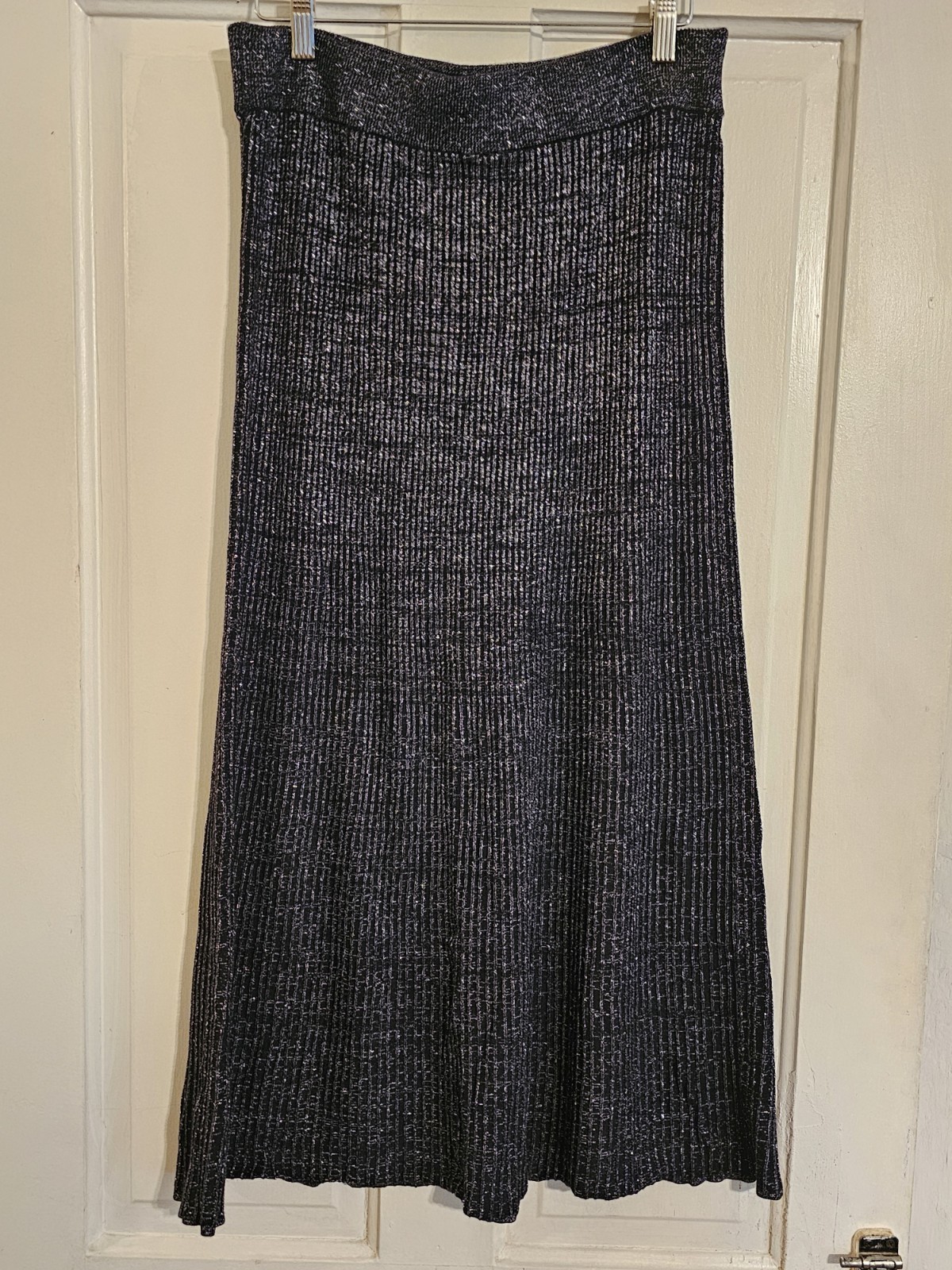 Free People Revolve Shine Bright Ribbed Knit Maxi Skirt Black & Silver Medium