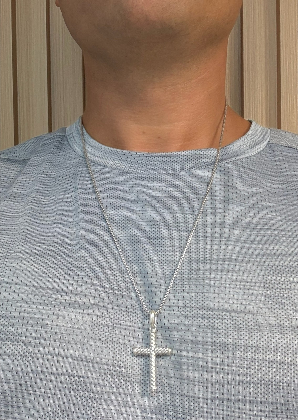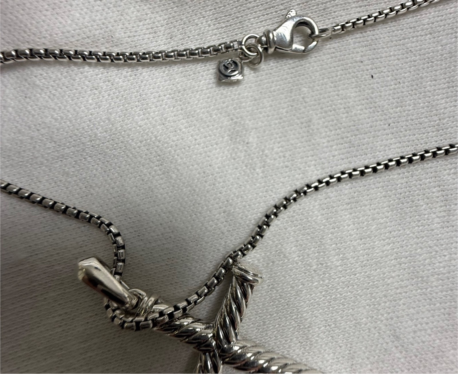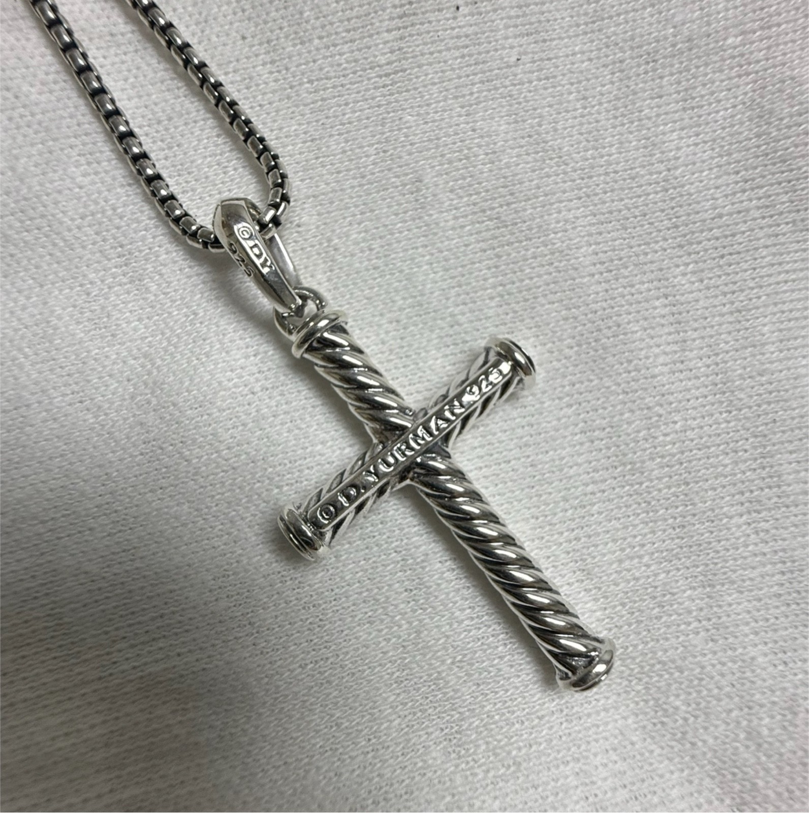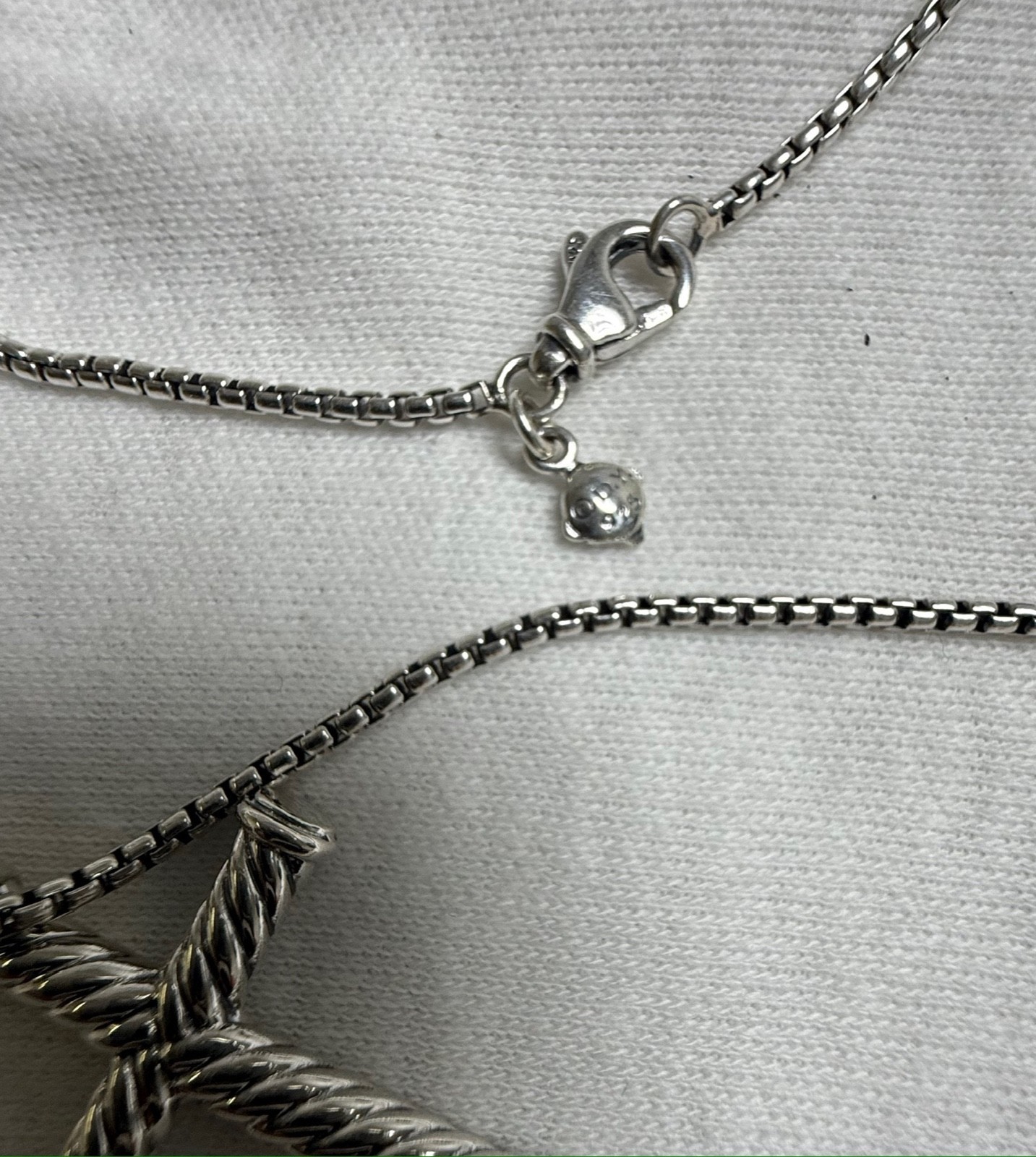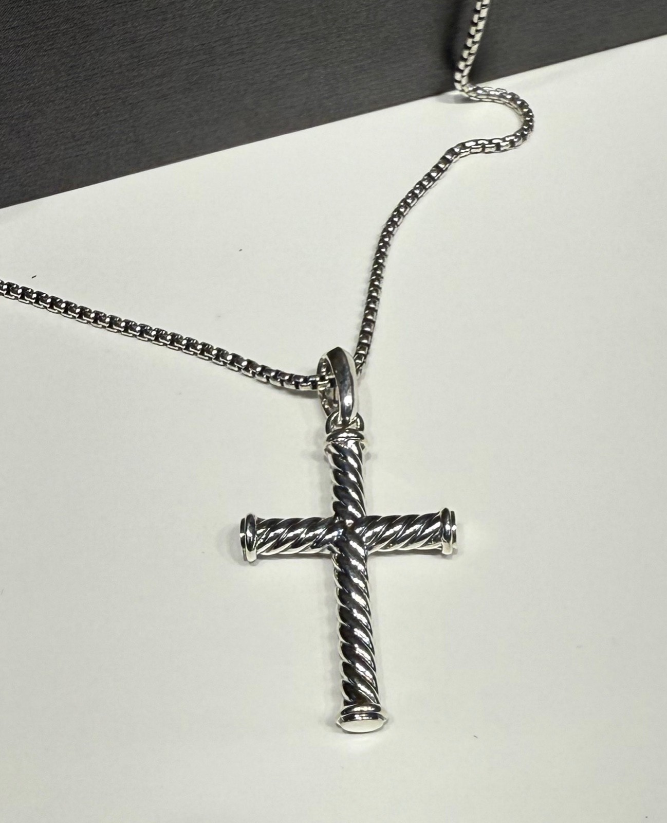 David Yurman 925 Sterling Silver Men's Cable Plain Rope Cross Pendant & Chain
