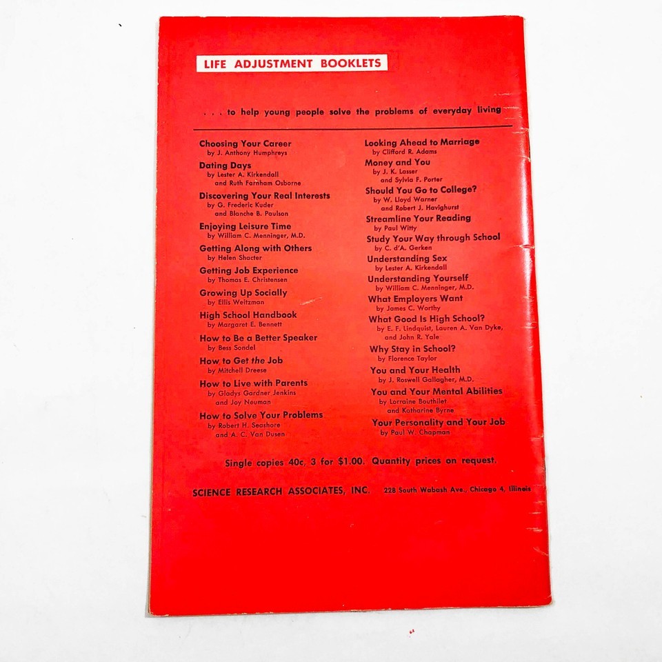 Vintage and rare, this booklet from Science Research associates, Inc. is written by Lester A. Kirkendall and Ruth Farnham Osborne.
