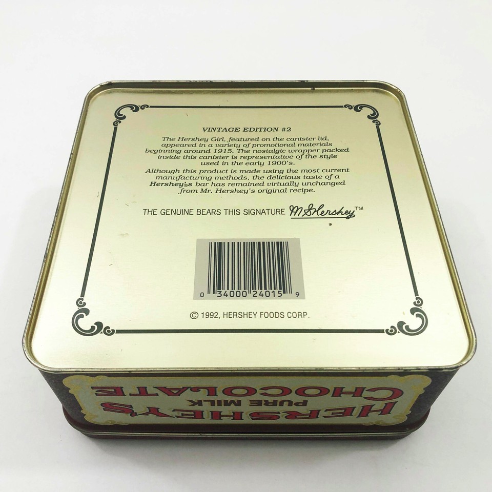 Vintage Hershey's Pure Milk Chocolate Tin Can 1992 6.25" x 6.25" x 3"