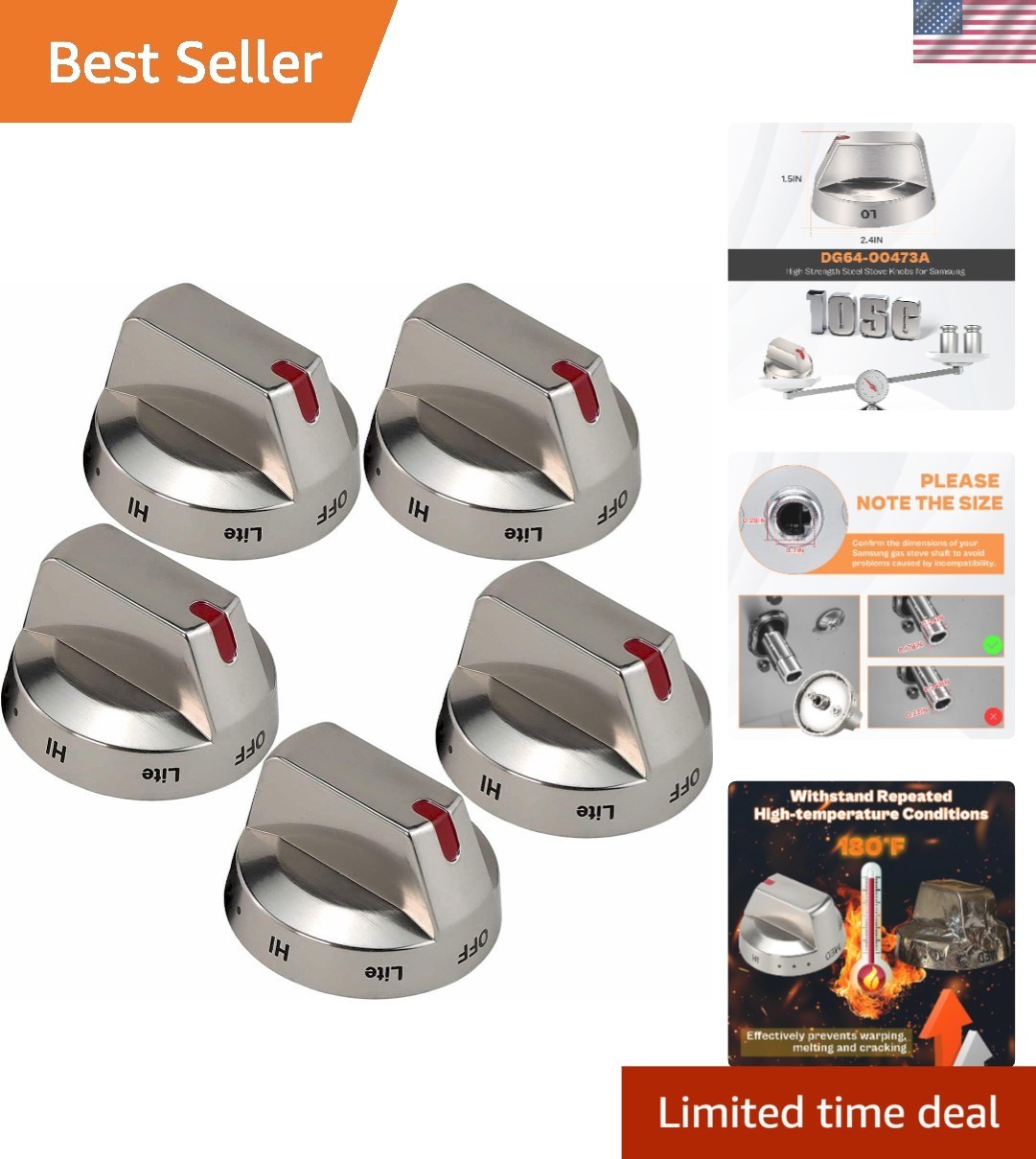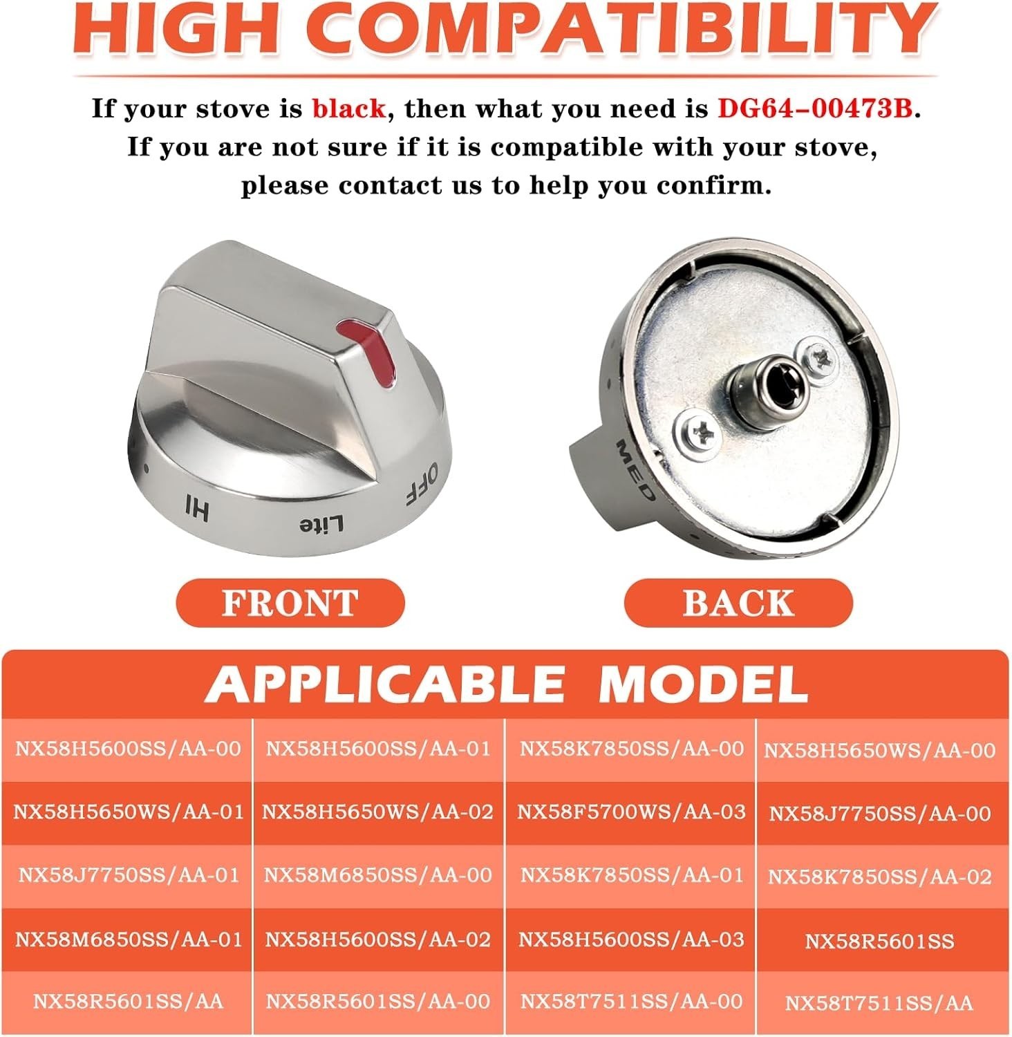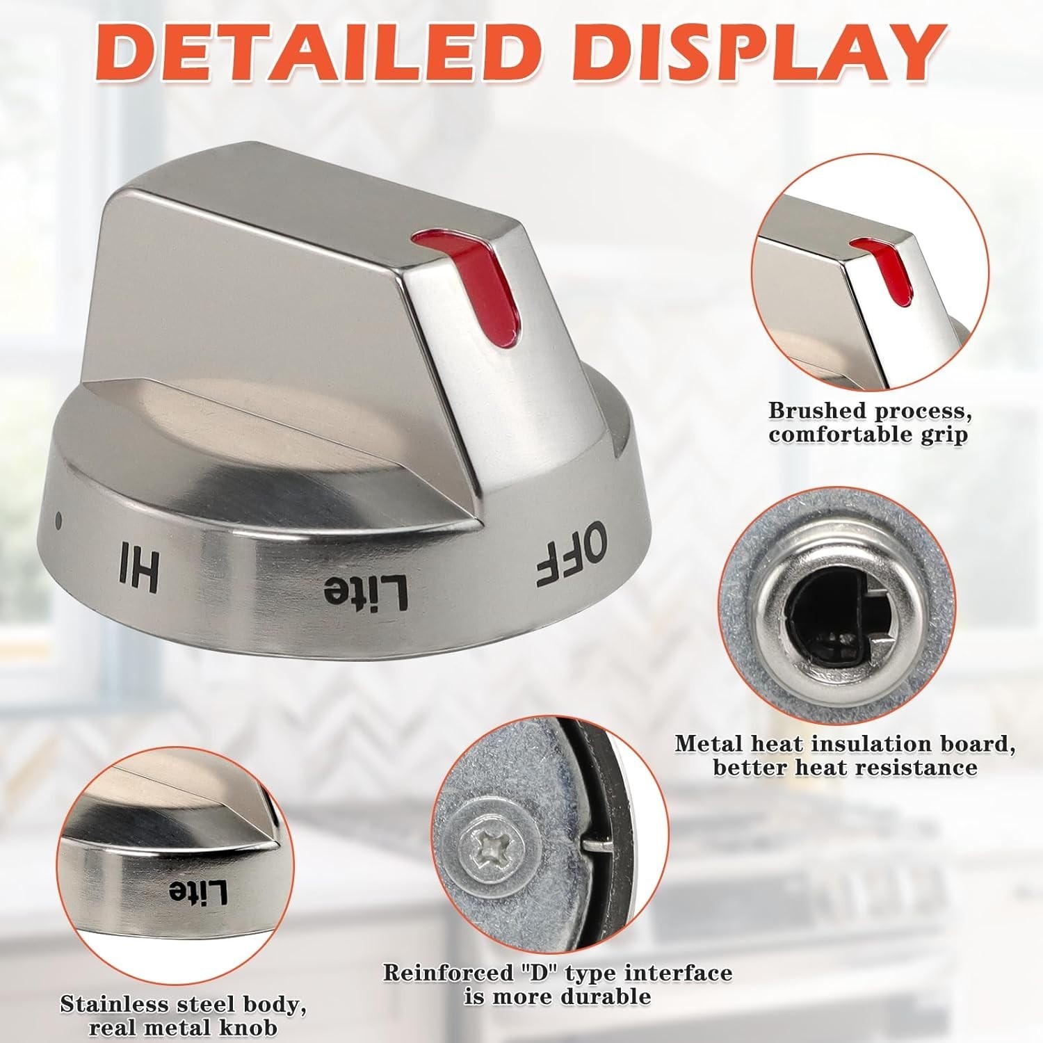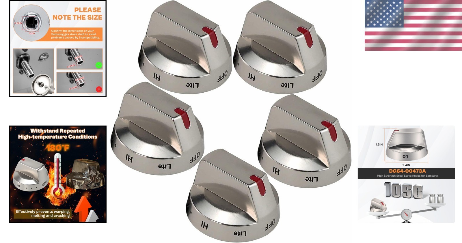 5-Pack DG64-00473A High-Strength Stainless Steel Stove Knobs for Samsung Ovens