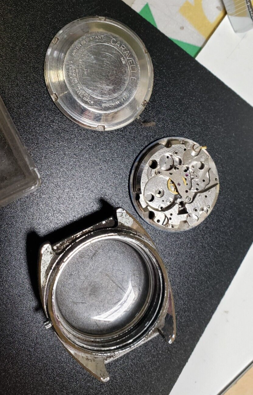 Vintage LOT 1960's Caravelle Watch Blue Silver Dial Movement Case Back Bubble see condition above. I am not an expert on these. We got a huge supply off a watch maker that went out of business years ago. He had all these movements in this container, as if it was the same timeframe or something. This is nice watch movement lot here. Not sure where the rest of this is. But hopefully you can use this!!!! This should be good lot for watch maker / repairer. this may need to be cleaned up, but does not have scuffs or scratches Please check out my other vintage watch parts and crystal. we have lots of them and more to list. I will give deals on multi-orders!!!! FREE SHIP IN USA