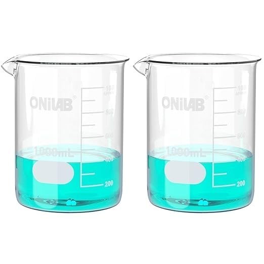 2pcs Scientific Griffin 1000ml Glass Beakers - Printed Graduation, Easy Handling