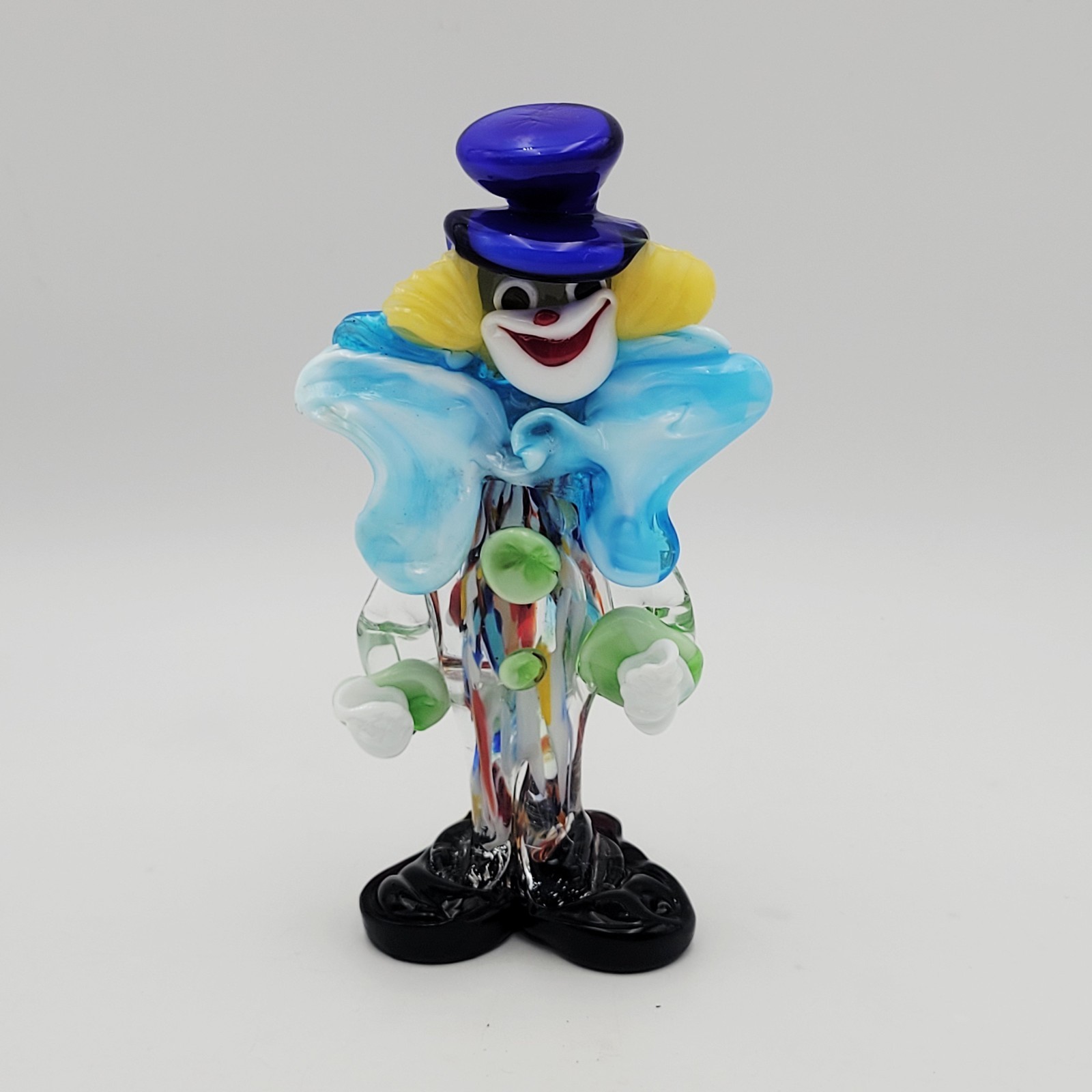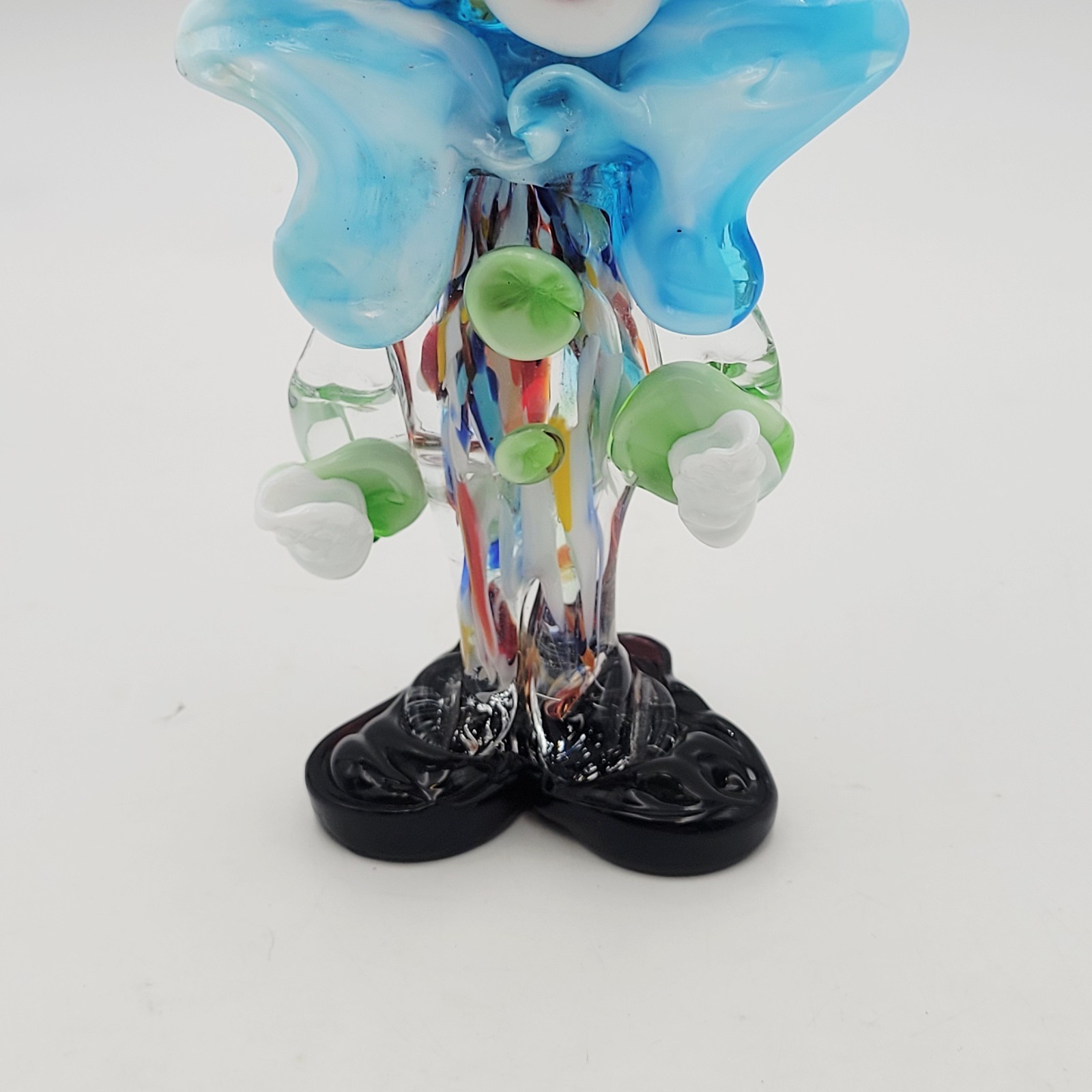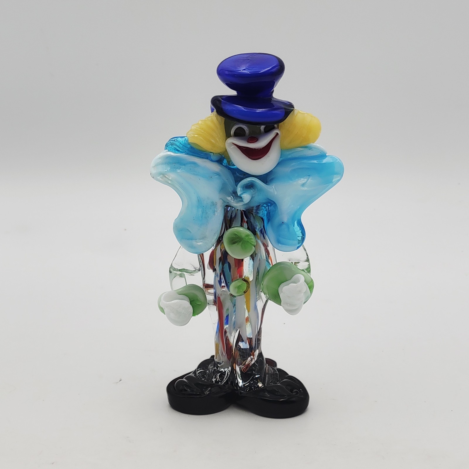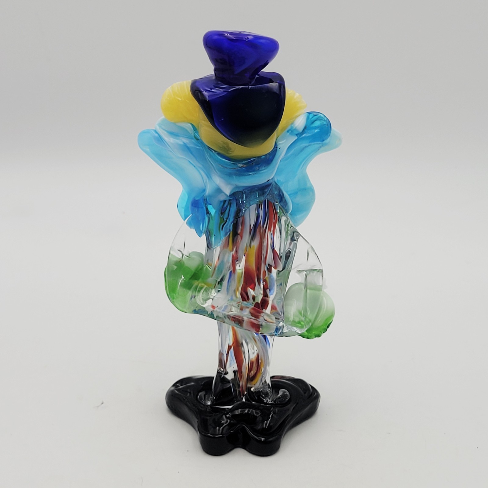 This product is a unique and colorful 7.5" MURANO glass clown made in Italy. The clown is a contemporary original piece of art glass featuring vibrant multi-color