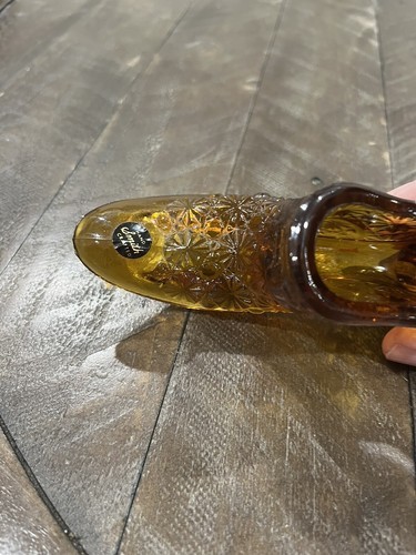 Vintage L E Smith Daisy & Button Amber Glass Slipper Shoe Sticker