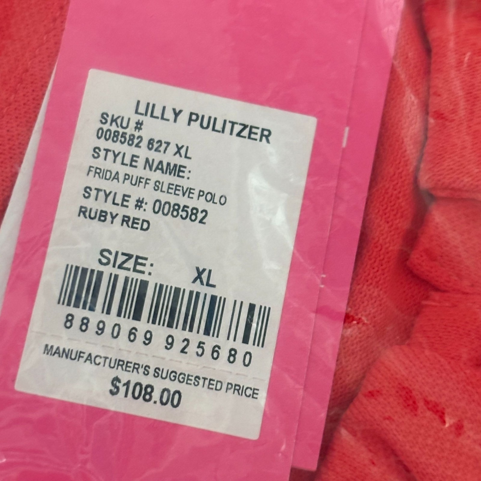 Lilly Pulitzer Frida Puff Sleeve Polo XL Ruby Red New NWT