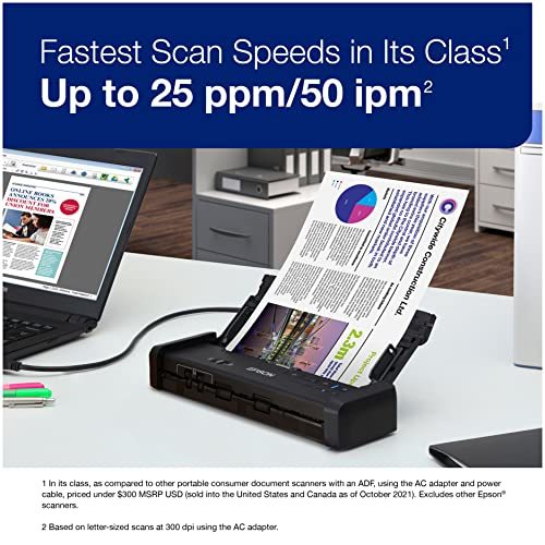 Epson WorkForce ES-200 Color Portable Document Scanner with ADF for PC and Mac,