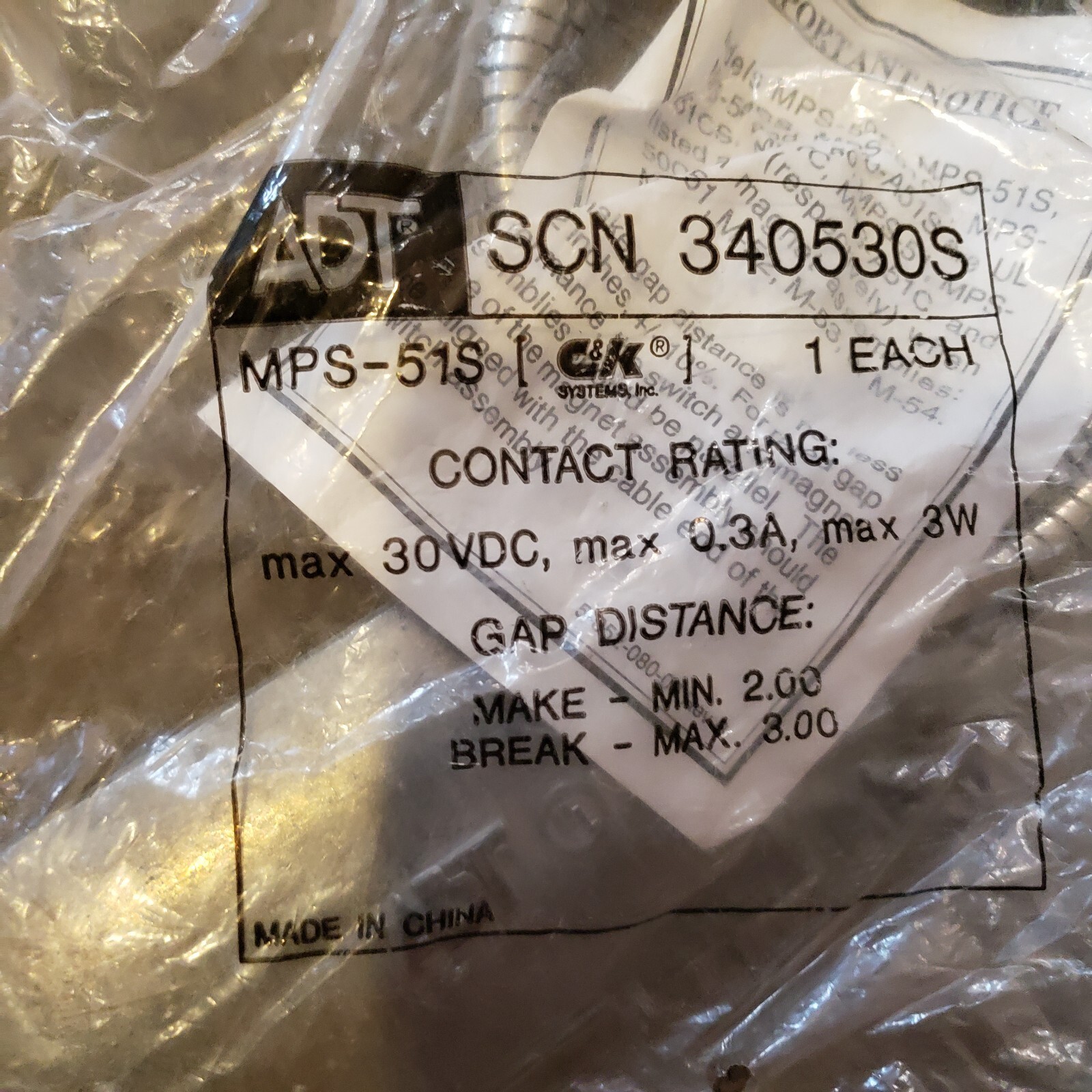Neuf Lot De 3 ADT Alarme Contact Kit Scn 340530s OS# MPS-51S/3W/30VDC