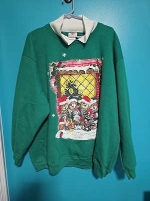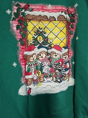 Vtg 90s 3XL Teddy Bear Ugly Christmas Nutcracker Sweatshirt Green Collar Granny