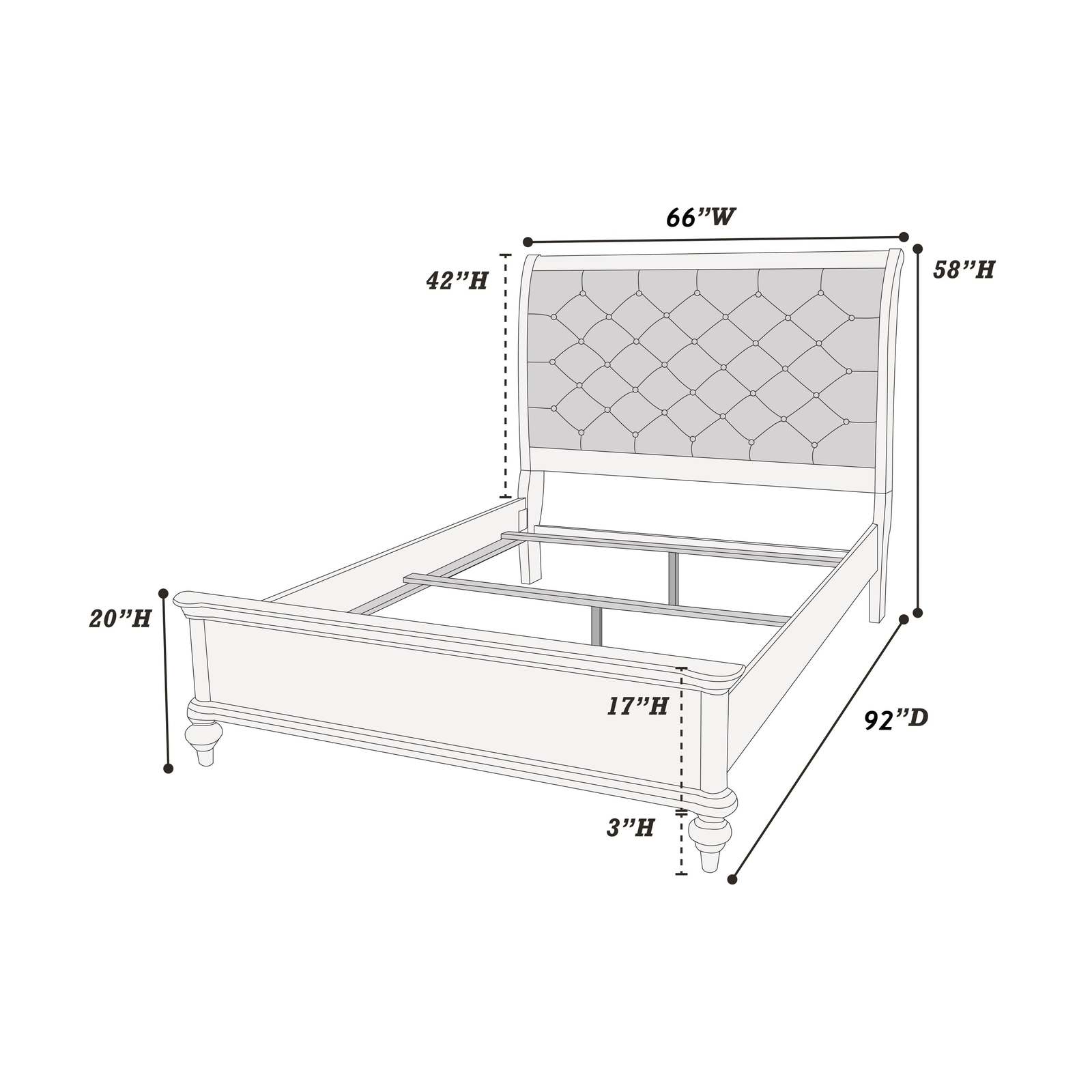 Upholstered bed features a diamond tufted headboard that provides a soft and comfortable place to lean back and relax