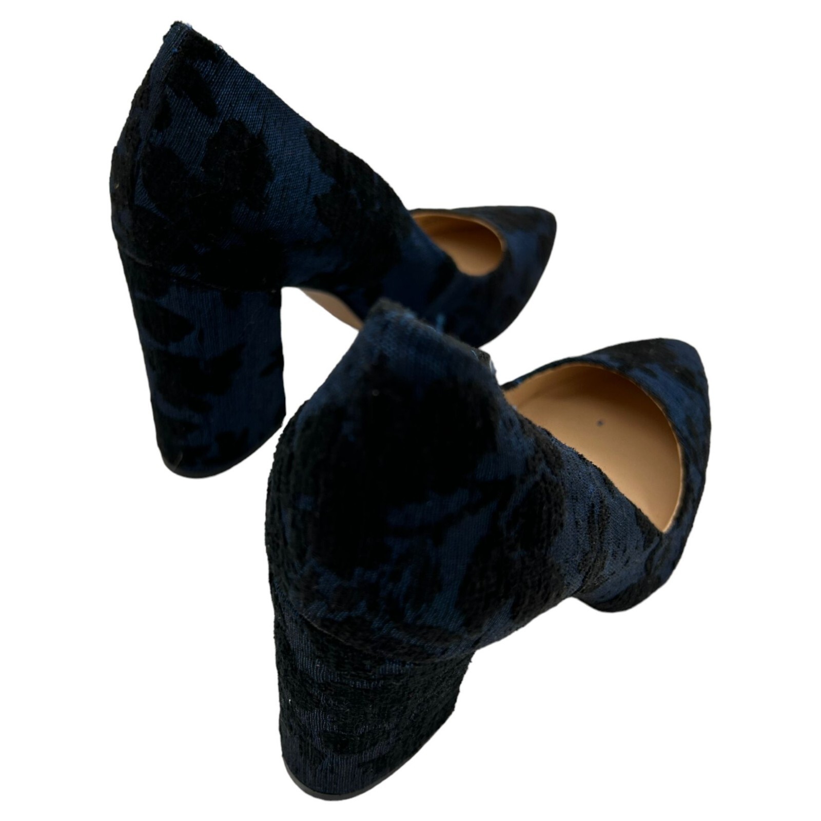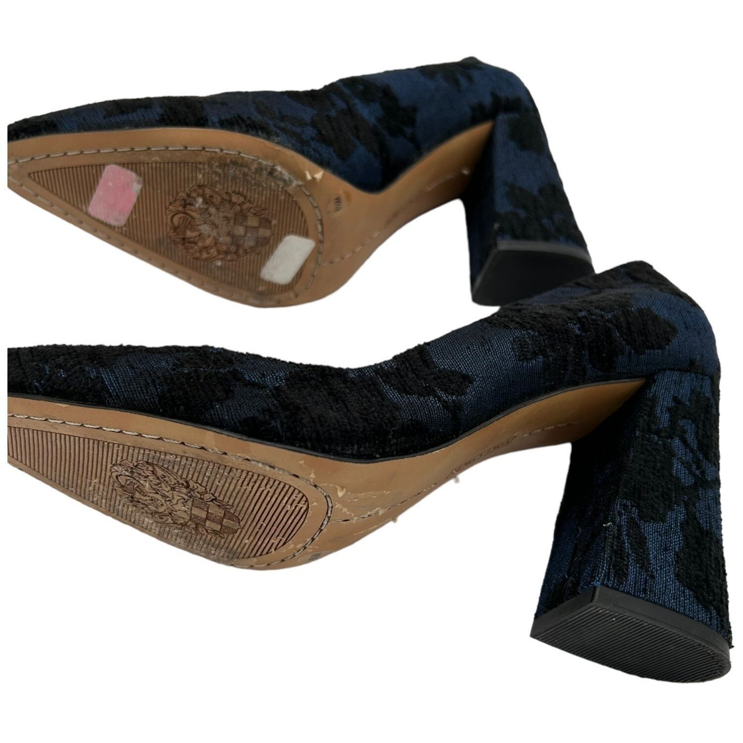 Vince Camuto Blue/Black Floral Brocade Tapestry Block Heels Black/Blue Size 6.5M