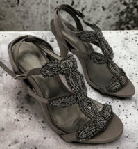 Kenneth Cole Reaction Pewter Beaded and Rhinestone Satin Strap Dressy 4 in. Heels Size 6M