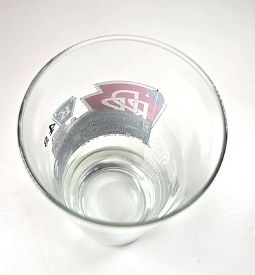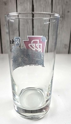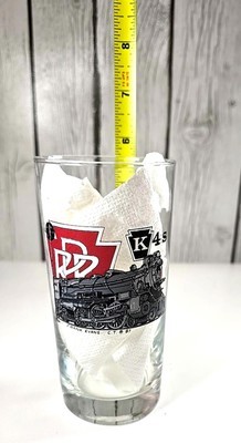 This 1987 souvenir glass features the Pennsylvania Railroad?s iconic K4s steam locomotive, illustrated by Frank Evans. A collectible piece of rail history perfect for train lovers or vintage glassware fans.