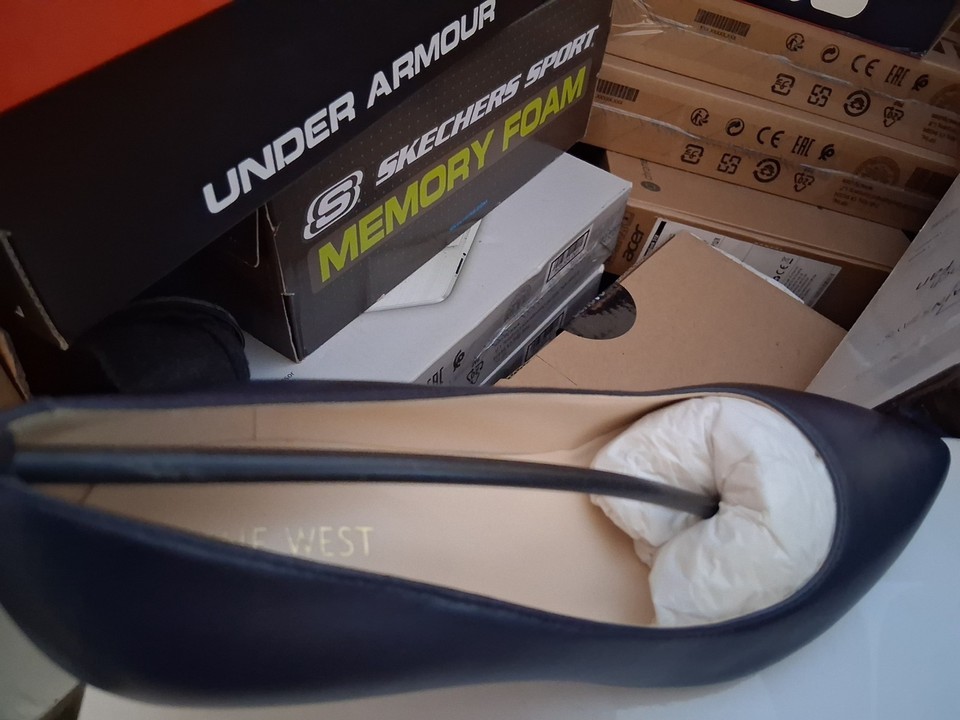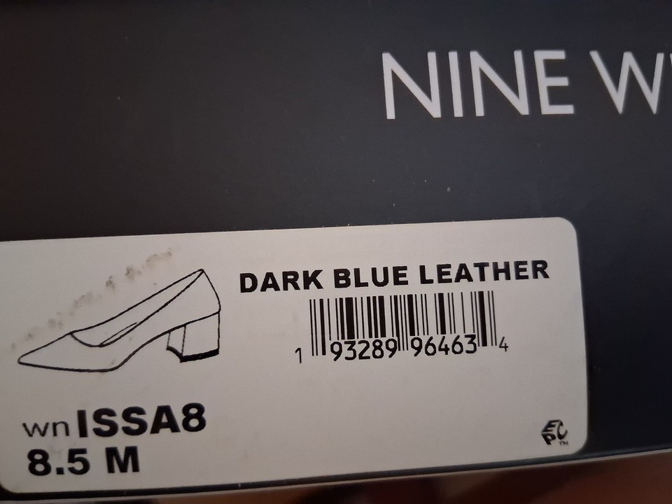 The product is a pair of Nine West Isaa8 women's leather shoes in a dark blue color, size 8.5M. These stylish pumps feature a comfortable heel and are made of leather material. Perfect for adding a touch of sophistication to any outfit, these shoes are ideal for women looking for both fashion and functionality in their footwear.