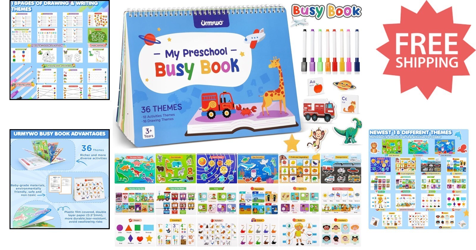 Discover the URMYWO Busy Book, an engaging educational toy designed for children aged 2-8. Packed with 36 thematic pages, it promotes recognition, reading, writing, tracing, and coloring through a variety of activities. The sturdy, reusable high-quality cardboard ensures safe, durable play, while the comprehensive set includes stickers, markers, and answer cards, making it the perfect gift for birthdays, holidays, or classroom use. Ideal for early development, road trips, and sensory learning, this busy book fosters concentration, observation, and motor skills in a fun and screen-free environment. To ensure fast and reliable delivery, we work with multiple fulfillment partners and suppliers. Depending on availability and location, your order may ship from different warehouses or arrive in packaging that varies from item to item. Tracking details are typically provided shortly after shipment, and customer satisfaction remains our top priority. Please note that due to carrier policies and regional regulations, certain items may not be eligible for delivery to specific states or territories.