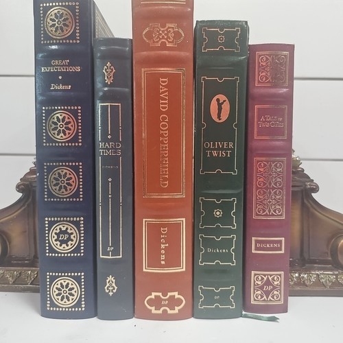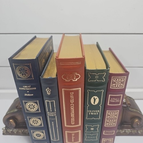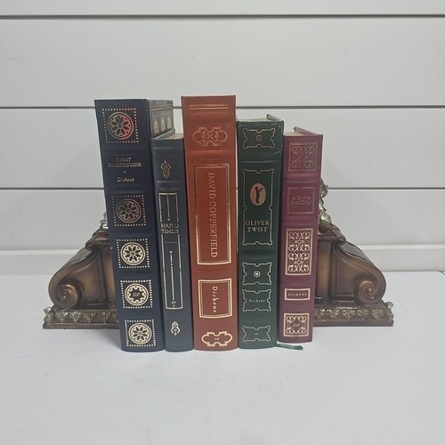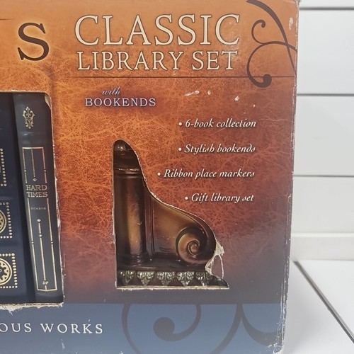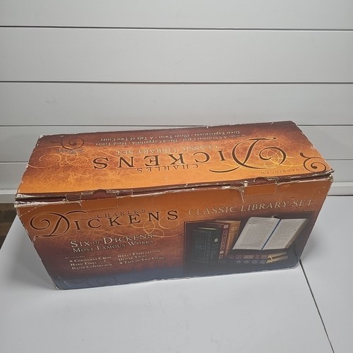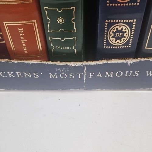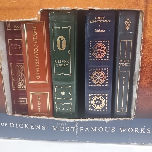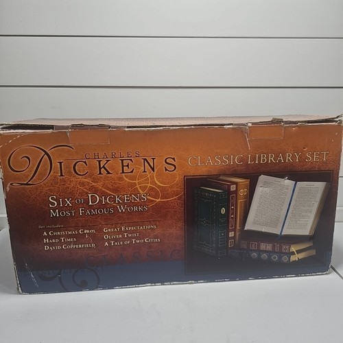 Charles Dickens Classic Library Set Box Leatherbound Book Lot Gold Foil Bookends