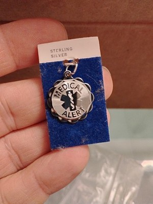 925 Sterling Silver Medical Alert Tag Pendant Charm Free Shipping