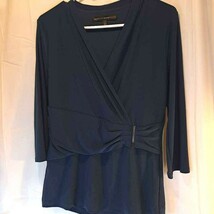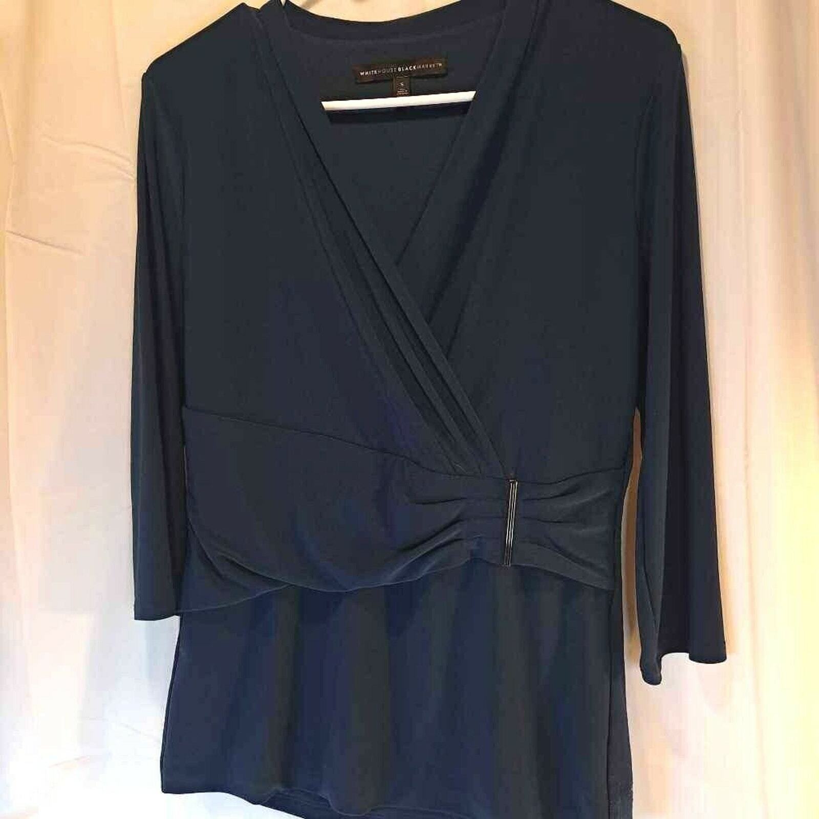 White House Black Market Women's Blouse - Navy Blue - Faux Wrap - Stretch S New