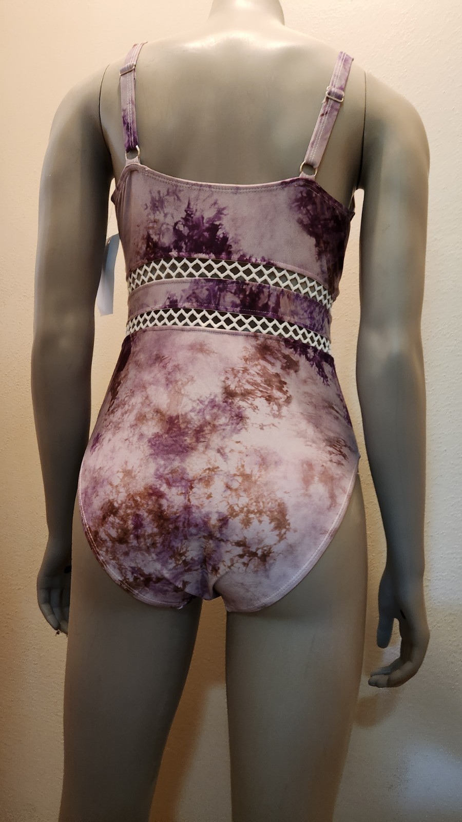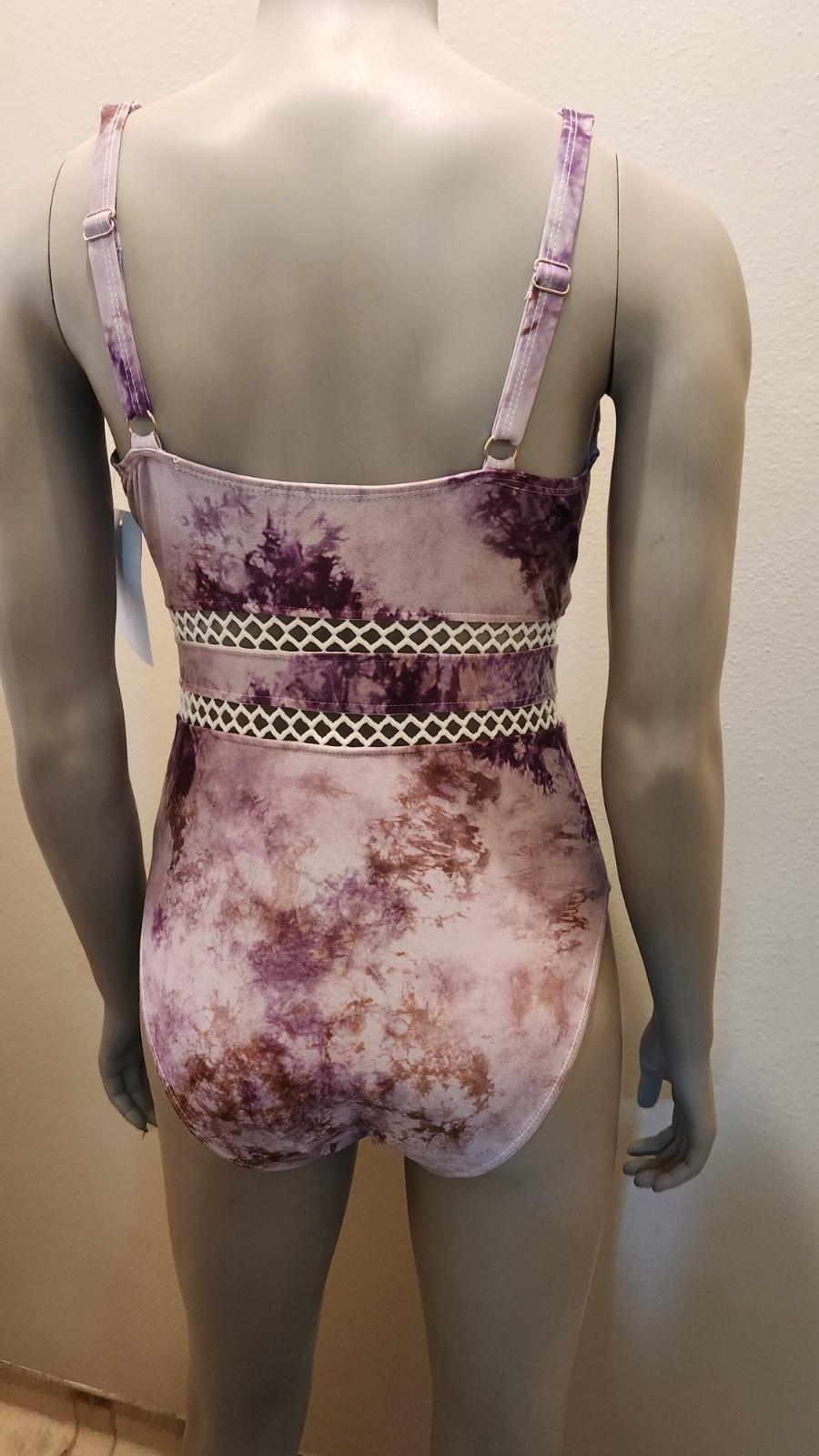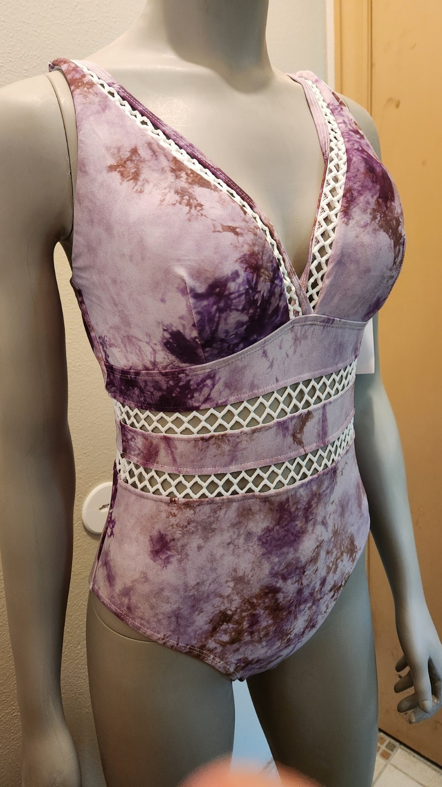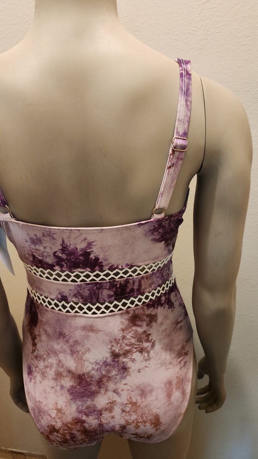The product is a women's one-piece swimsuit in a vibrant purple color. Specifically designed for women, this swimsuit offers a sleek and flattering silhouette. The deep purple hue adds a pop of color to your beach or poolside ensemble, making you stand out with style and confidence. Perfect for lounging by the water or engaging in water activities, this one-piece swimsuit is a stylish choice for any woman looking to make a fashion statement in her swimwear wardrobe.
