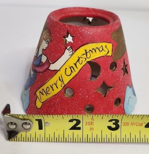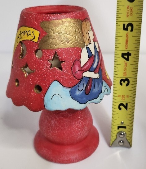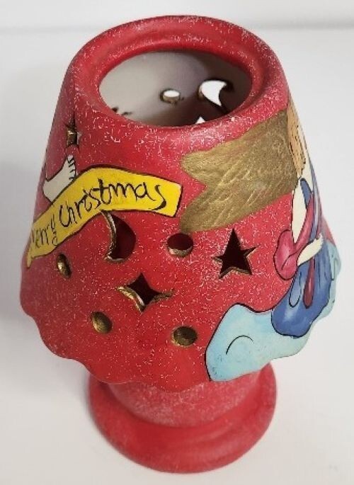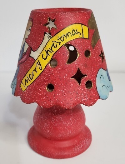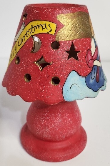 Vintage Ceramic Christmas Santa Fairy Light Tea Candles 5 3/4" is a traditional holiday decor piece featuring a hand-painted Santa design. This multicolor ceramic candle holder is suitable for tea lights and adds a festive touch to any Christmas celebration. The matte finish and intricate detailing make it a charming addition to your holiday decorations.