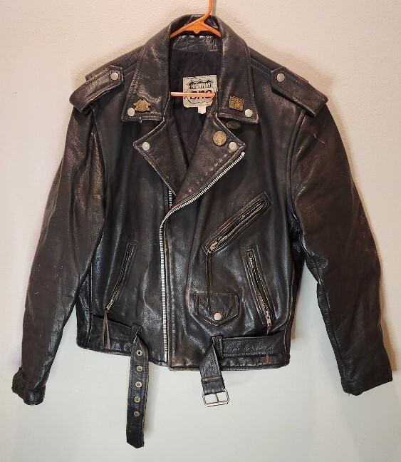 Highway One Men's Leather Jacket Large Vintage Black Snap Zip Motorcycle Biker