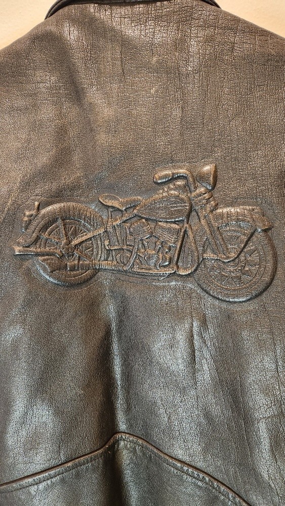 Featuring a black snap zip closure, this jacket is both easy to wear and wind-resistant, making it an ideal choice for outdoor activities. With a relaxed fit and a range of pockets, this jacket is perfect for storing your essentials while on the go. Whether you're a fan of the biker or motorcycle theme, or just looking for a stylish and functional piece of clothing, this Highway One Men's Leather Jacket is the perfect choice. The jacket includes an embossed image of a motorcycle on the back of the jacket.