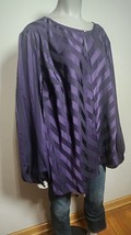 Liz Claiborne Purple Black Striped Dress Shirt Round Neck Long Sleeve Size 3x