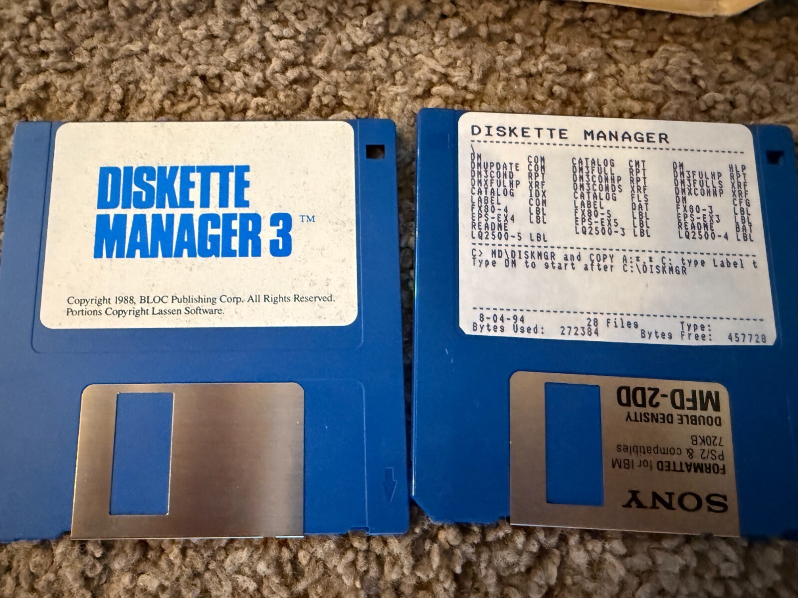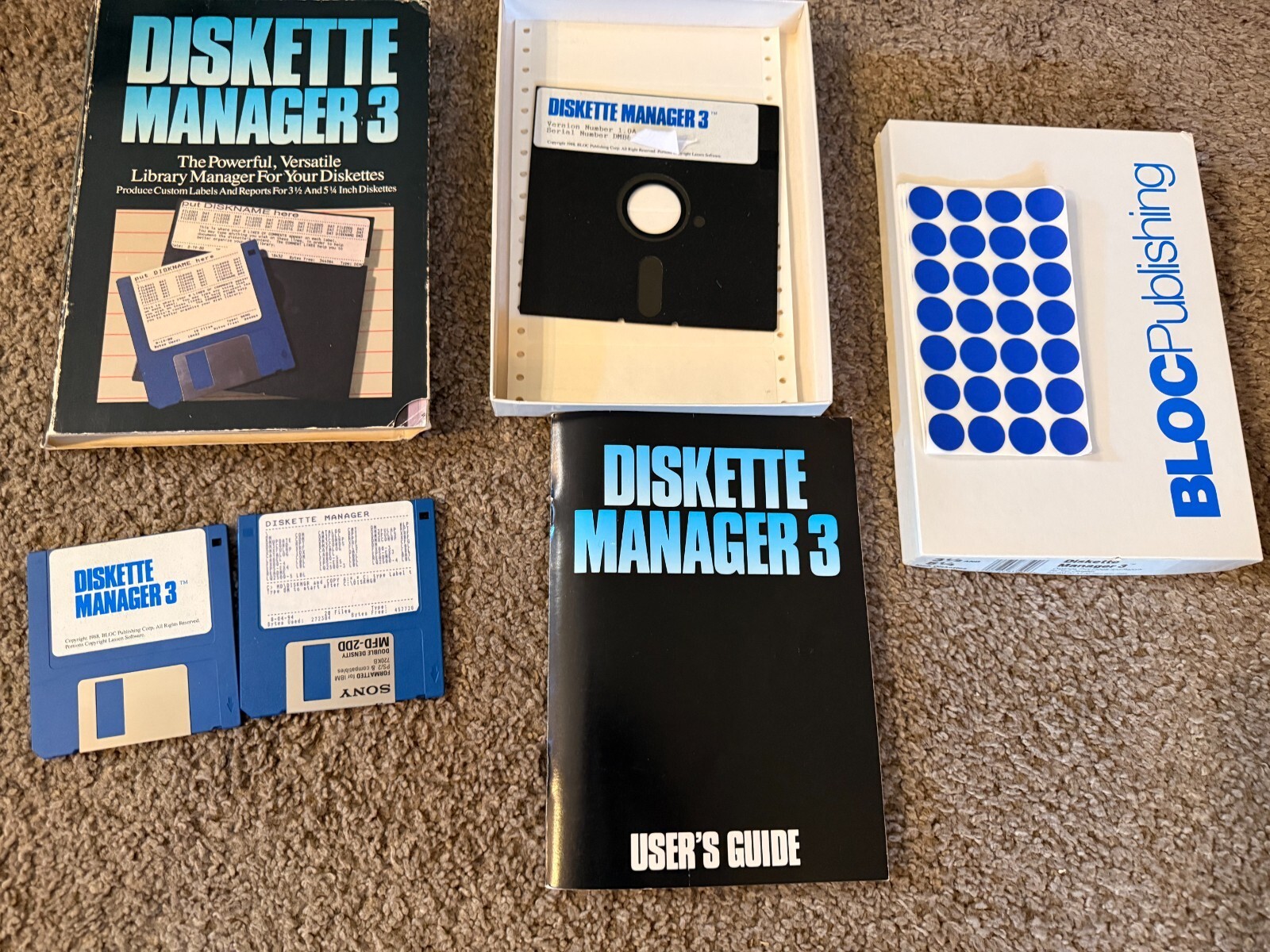 1988 Diskette Manager 3 Software IBM PC 3.5" 5.25" Floppy Filing Library BLOC from estate sale. Old and on shelf for many years. FREE SHIP