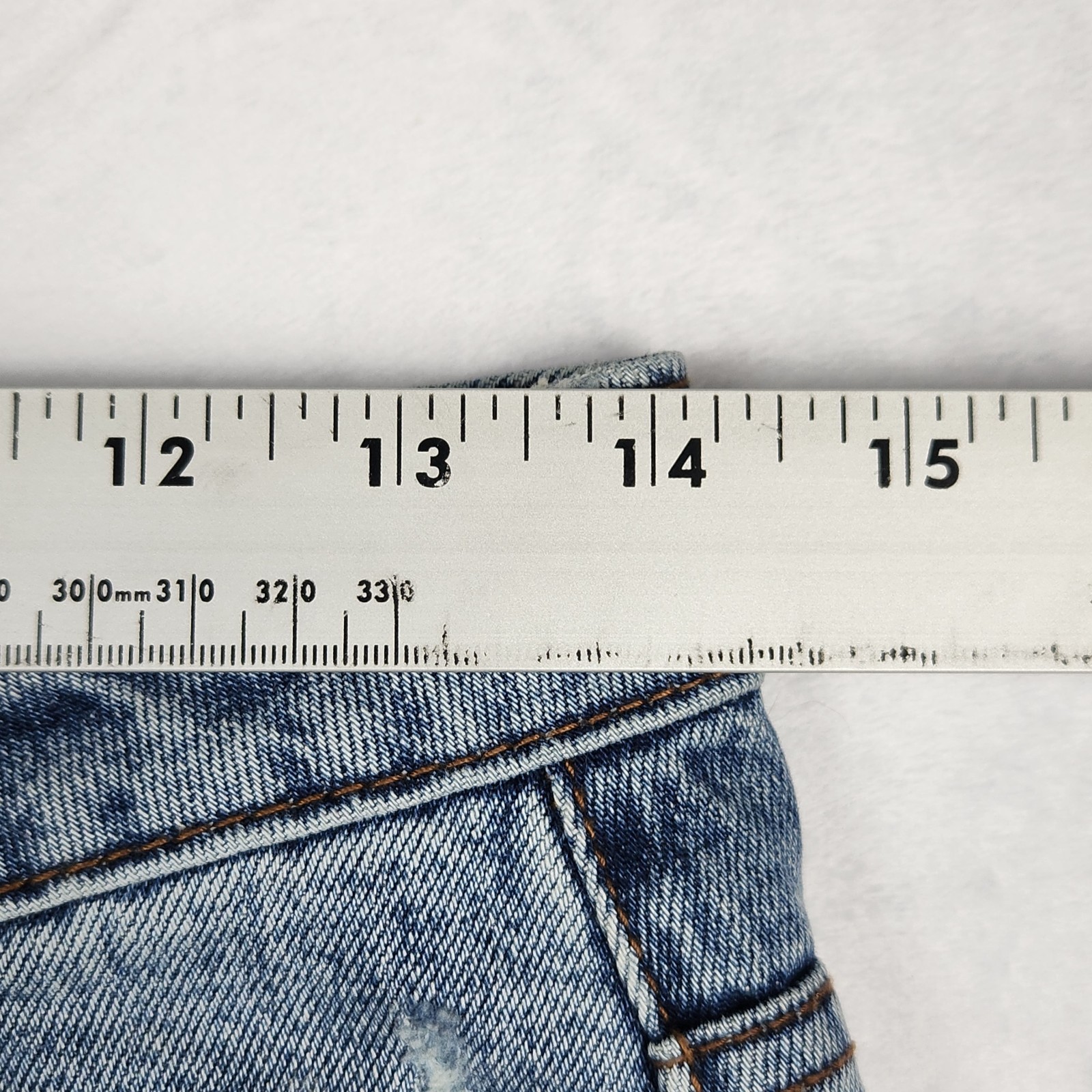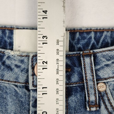 The One Teaspoon Short Women's Size 27 High Waist Bandits in a slim fit with a twisted cuff hem is a stylish denim short designed for travel and casual occasions. Made from 100% cotton denim, these shorts feature a high rise waist and a 5-pocket design with a 1.5-inch inseam. The solid blue color and medium wash give them a classic and versatile look, perfect for the summer, fall, and spring seasons. With a zip closure and accents of buttons and a logo, these shorts combine fashion and functionality for a trendy and comfortable wear.