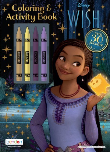 Join the characters from Disney's Wish on a coloring adventure with Bendon's Coloring and Activity Book with Crayons! This 48-page coloring book is chock-full of activities, games, and puzzles plus bonus crayons for coloring fun. As an added bonus, 4 crayons are attached right on the cover. Each page features beloved characters from the new Disney Wish theatrical film! This is an officially Walt Disney Studios licensed product ideal for children ages 3 years and older. Celebrate Disney's 100th Anniversary with coloring books from Bendon!