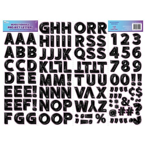 Add visual impact to your displays with the Royal Brites Self-Adhesive Alpha-Numeric 3D Black Characters. Measuring 2 tall, each character features a clean, modern font and a bold black finish, ideal for posters, charts, signs, and craft projects. With 115 repositionable letters, numbers, and punctuation marks per pack, this set gives you everything you need to express your message clearly and creatively. Perfect for school assignments, office boards, event signage, and DIY decorations, these characters apply easilyjust peel and stick. The strong adhesive backing holds firmly in place but also allows for repositioning if adjustments are needed. Designed to be clean, simple, and professional, they help bring your creative ideas to life without the mess of glue or markers. From classroom projects to party banners, these versatile characters are a fun and functional tool for makers of all ages. With Royal Brites, its easy to create standout designs that get noticed.