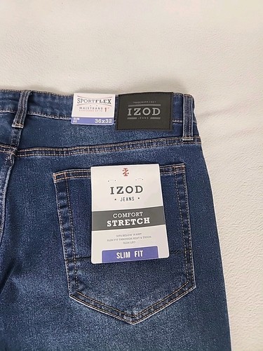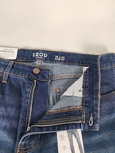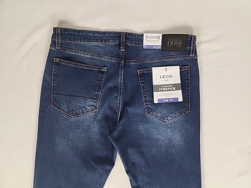 IZOD Dove Blue Sportsflex Slim Fit Straight Leg Denim Jeans 36X32 Mens IZ25-80SL