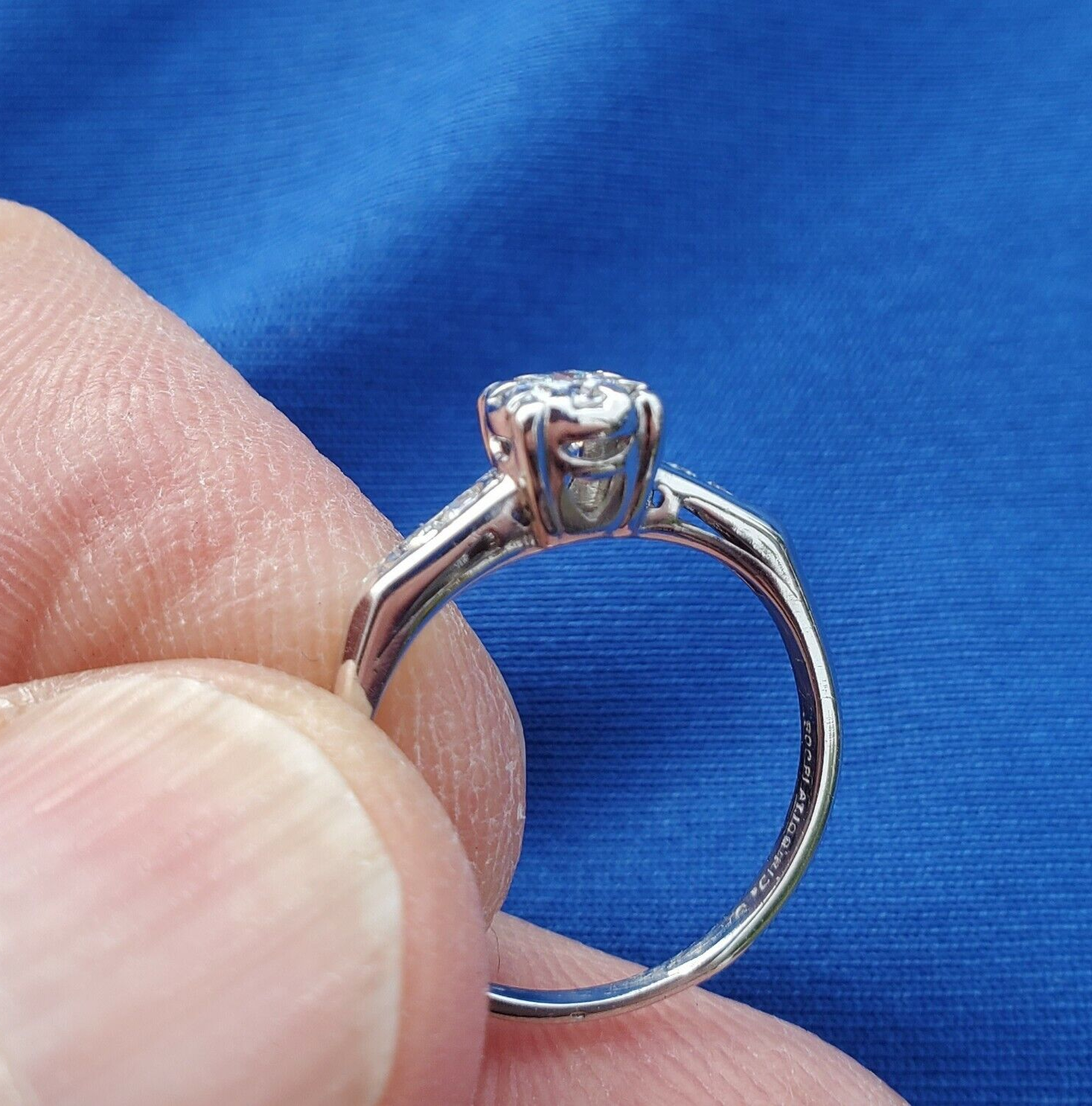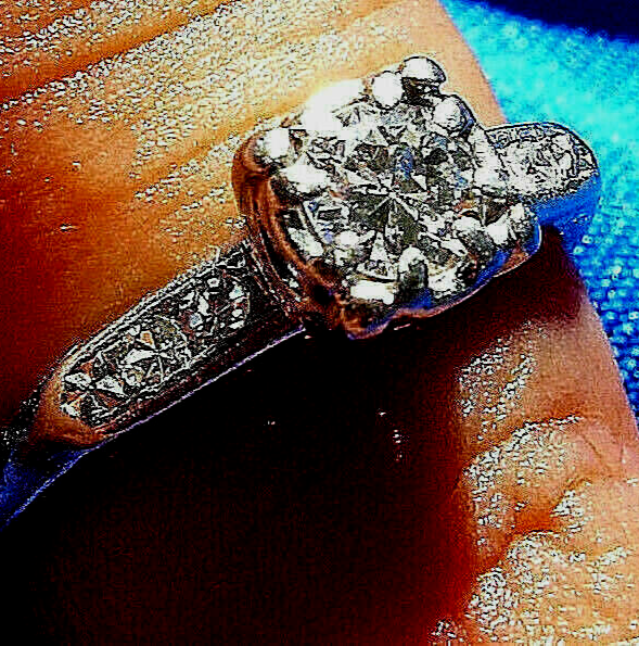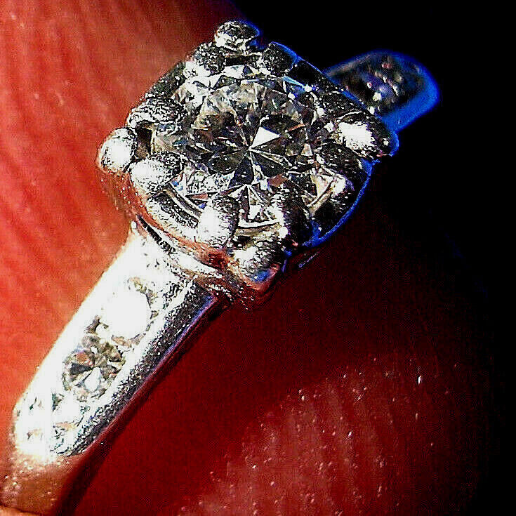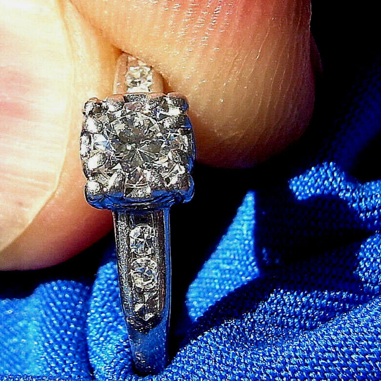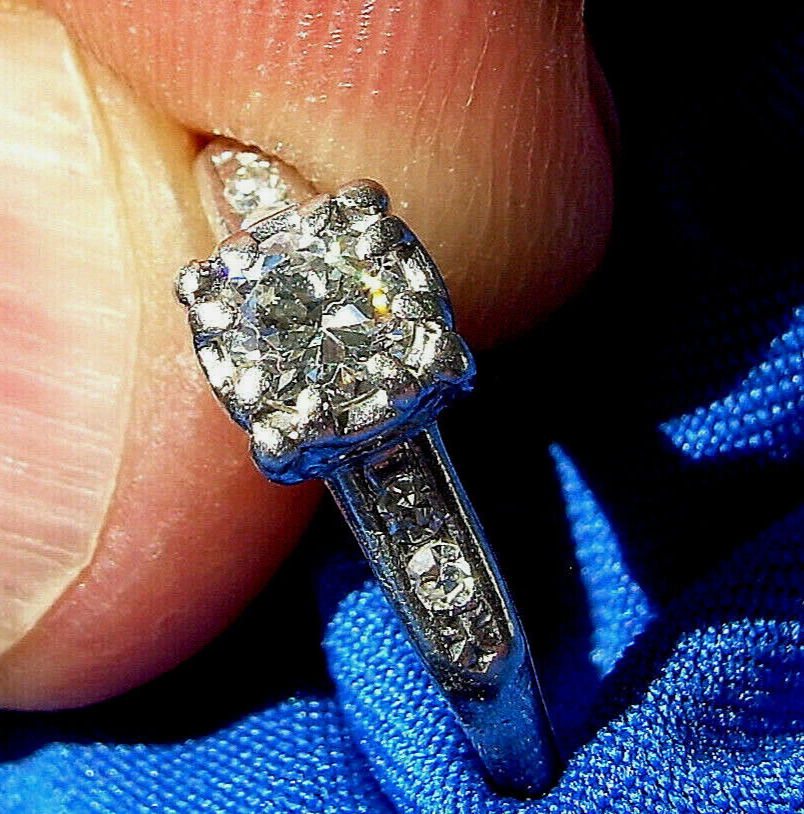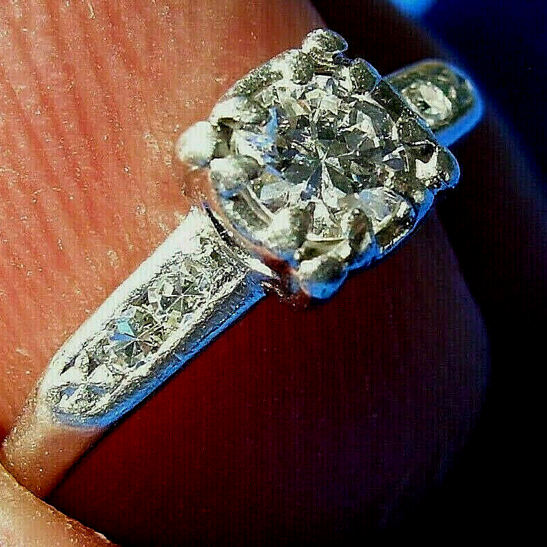 Earth mined Diamond Deco Engagement Ring Vintage Solid Platinum Solitaire Size 5