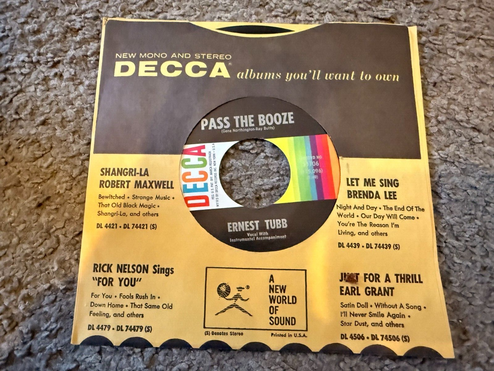 Ernest Tubb Pass Booze THAT'S All Ever Be A Me 7 " Vinile 45 RPM W/ Decca Manica