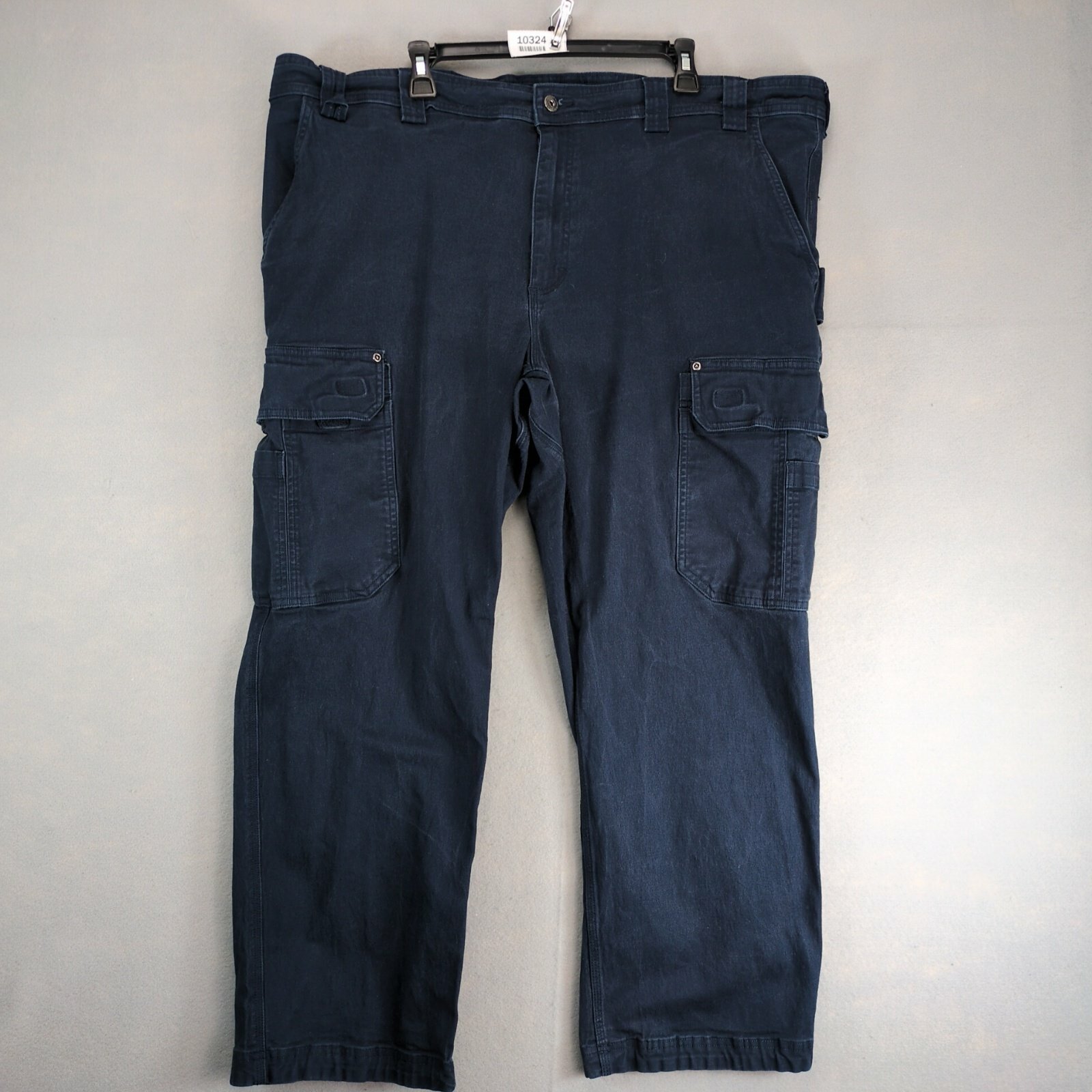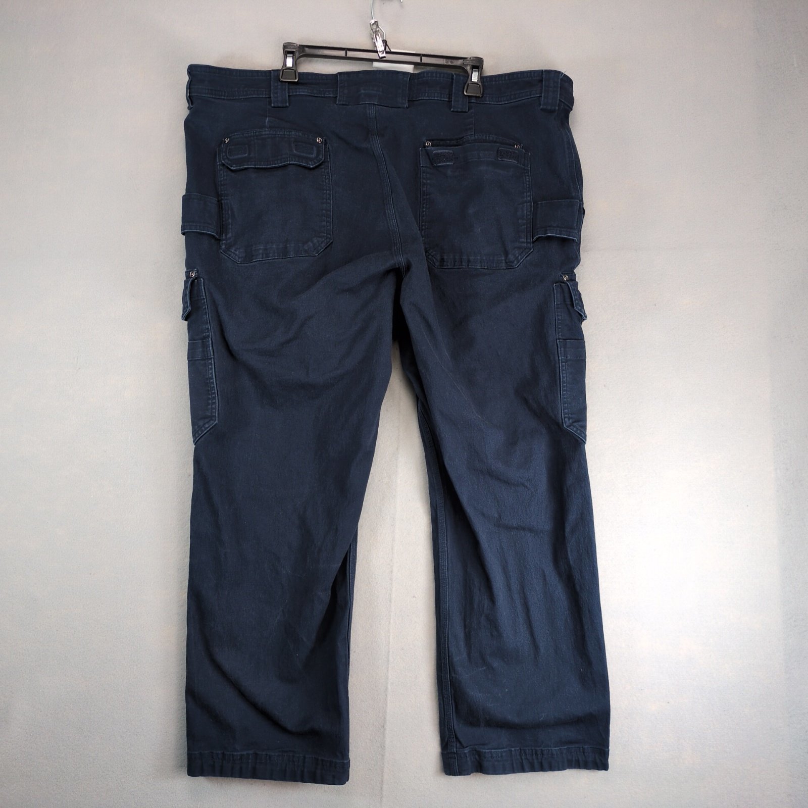 Features: Relaxed Fit, Straight Leg, Mid Rise, Cargo Pocket, Cargo Style, Easy Care, Pockets, Stretch, Belt Loops, Crouch Gusset, Solid Pattern, 44 in Measured Waist, 29 in Inseam, Button Zip Closure, Logo, Machine Washable
