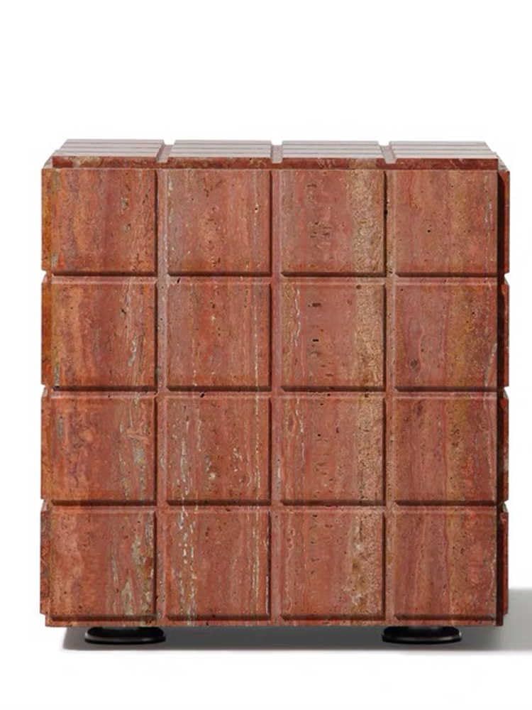 Nordic Luxury Red Travertine Side Table Natural Stone Cube End Table, Designer
