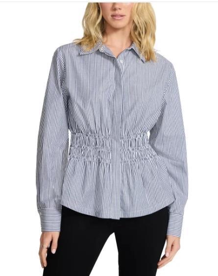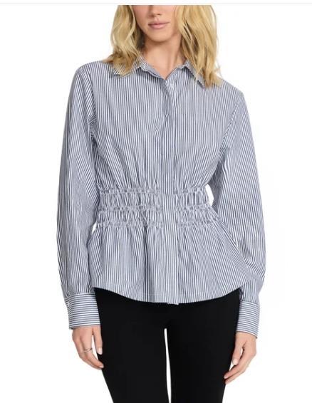 Steve Madden Womens Shirt Multicolor Striped Smock Button-Up Long Sleeves Cotton