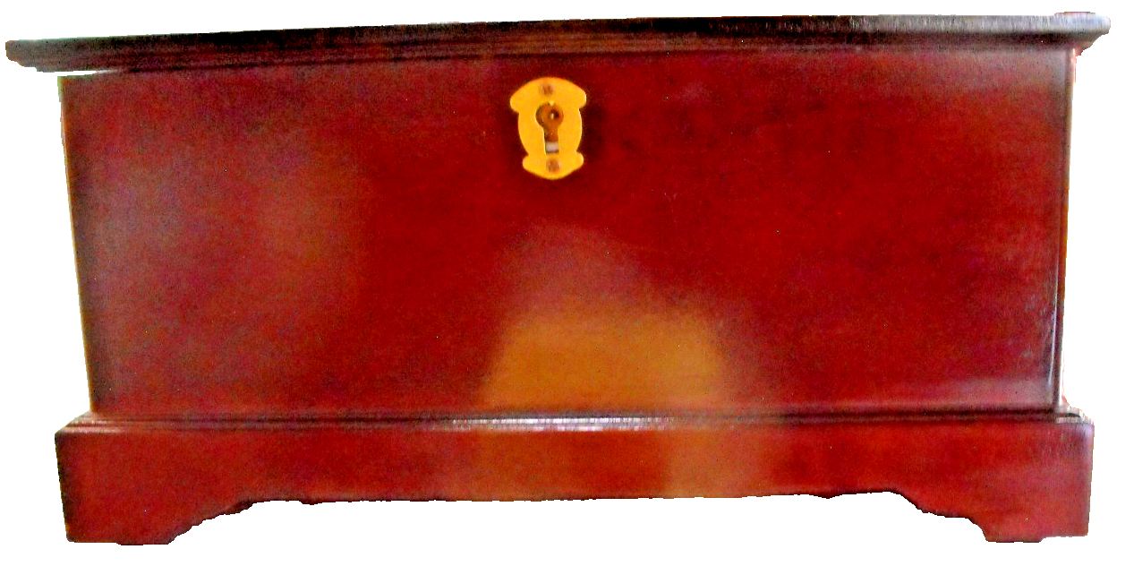 Made in the United States, it features a rich cherrywood exterior with velour lining, adding a touch of sophistication to any room.