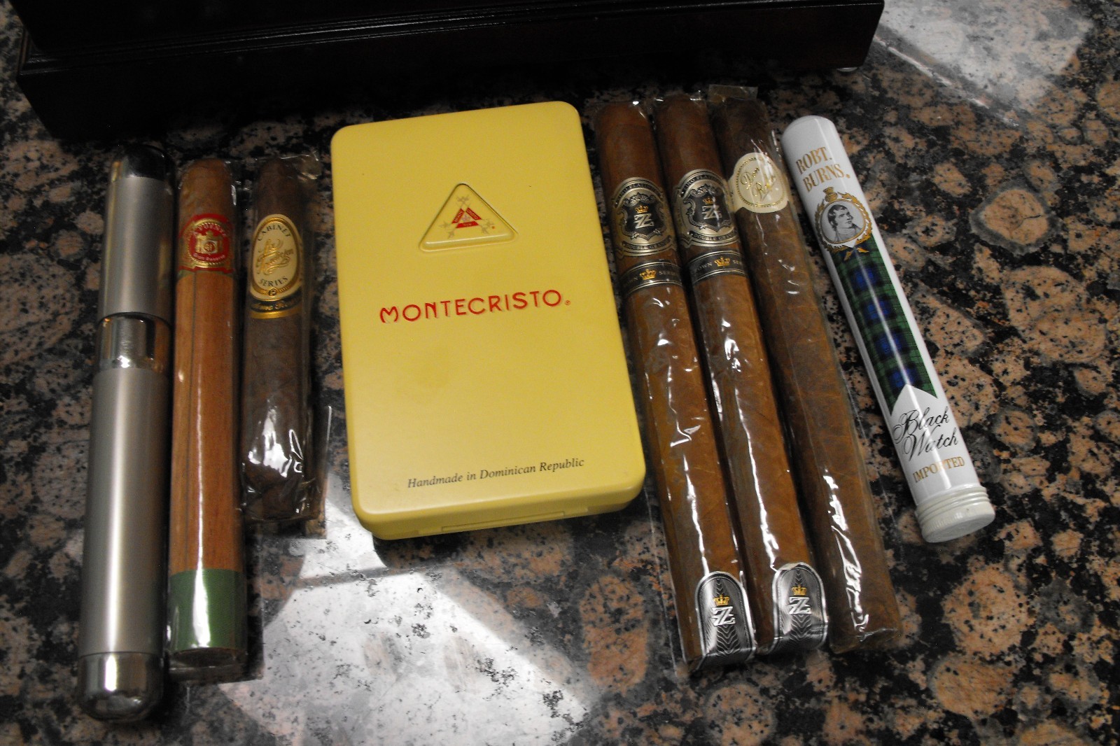 It also includes assorted cigars and a cutter, making it a practical and stylish addition to any cigar enthusiast's collection.