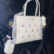 KARL LAGERFELD PARIS MAYBELLE SATCHEL CROSSBODY BAG WHITE LOGO NEW