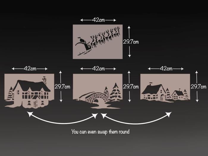 Easy To Use. Simply line up the Christmas stencils to create a complete picture postcard, or mix and match the stencils to create different scenes. Add different combinations to smaller windows and enjoy watching the winter sun rise and set behind each display
