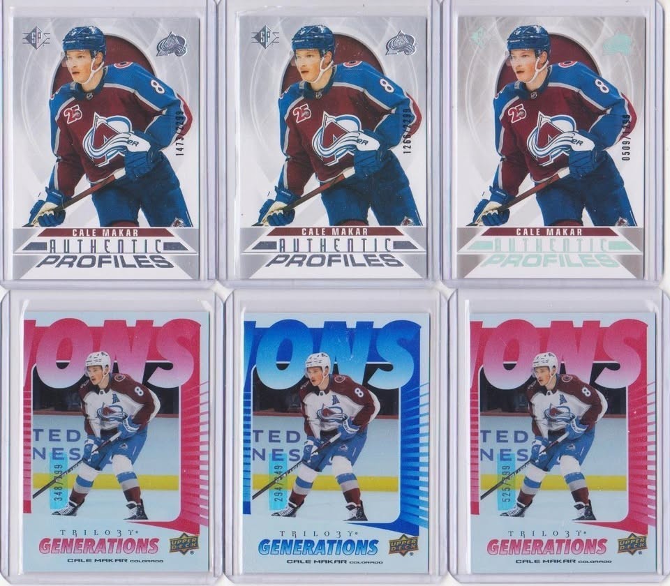 Lot of 45 Cale Makar Mixed Serial Numbered cards