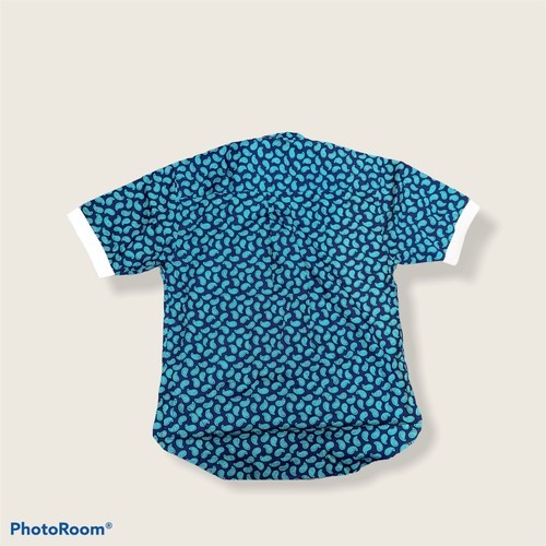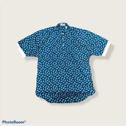 VTG Aureus Men's Collarless Polo Shirt Short Sleeve Blue Green Paisley Medium.