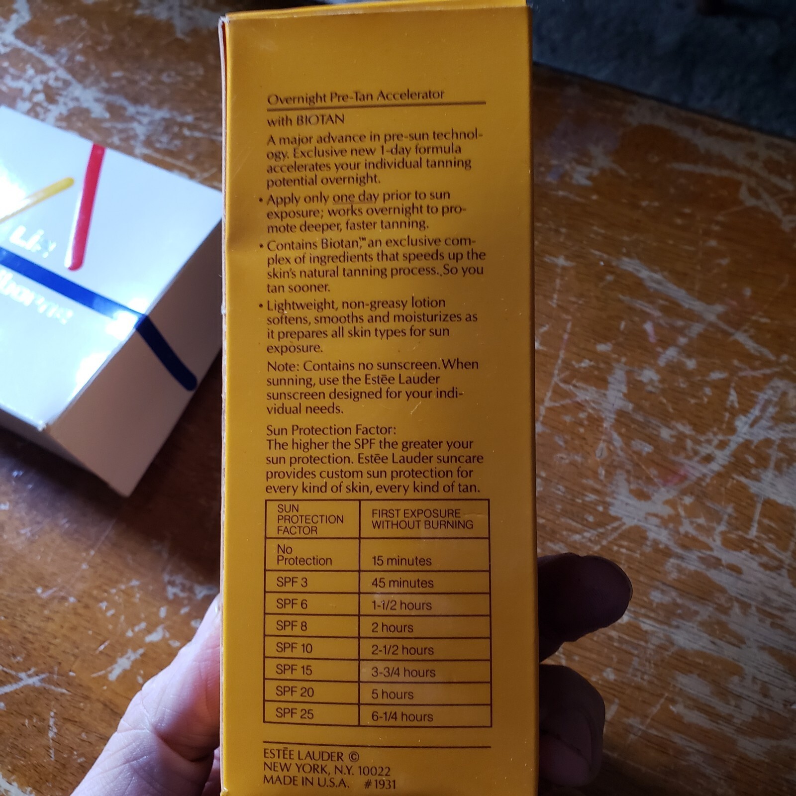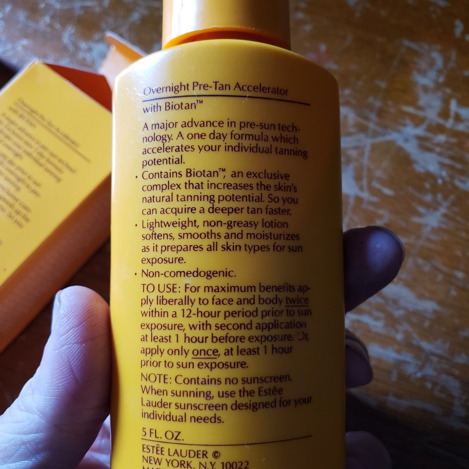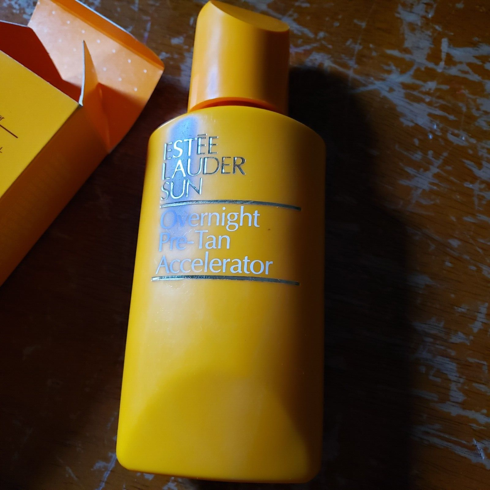 Vintage 80s estee lauder Sun Golden / Overnight Pre-Tan Accelerator w/ box 5 oz. NOTE - some has evaporated out of this. And I cannot assure you this is exactly as it was meant to be in the 80s. Smells good, but not sure. Collectable. Got from estate type sale, where everything from this lady was in boxes from 90 or earlier.!!! FREE SHIP