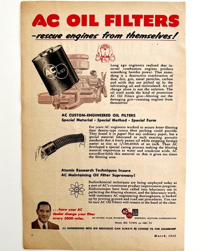 GM General Motors AC Oil Filters Advertisement 1955 DWS6E