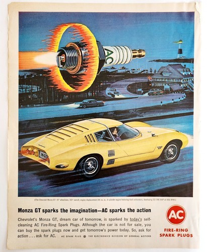 1964 AC Spark Plugs Chevrolet Monza GT Advertisement Automobilia Fire Ring HM2F