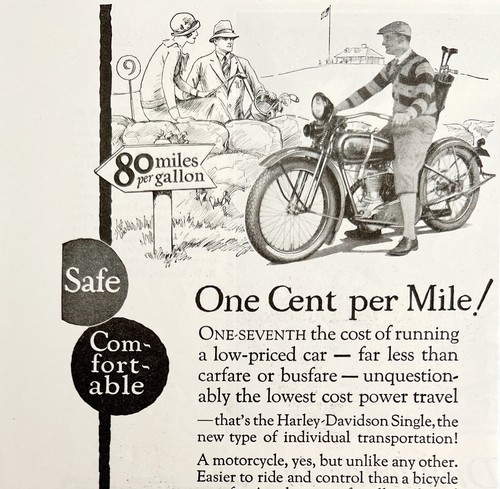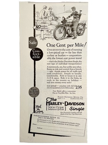 Harley Davidson Single Motorcycle 1926 Advertisement One Cent Per Mile DWY1A