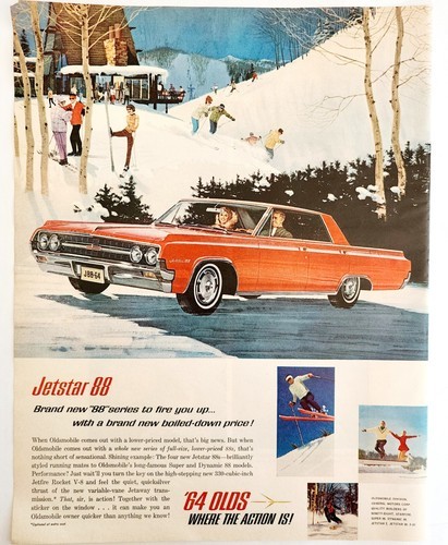 1964 Oldsmobile Jetstar 88 Rocket V8 Skiing Advertisement Automobilia HM2F